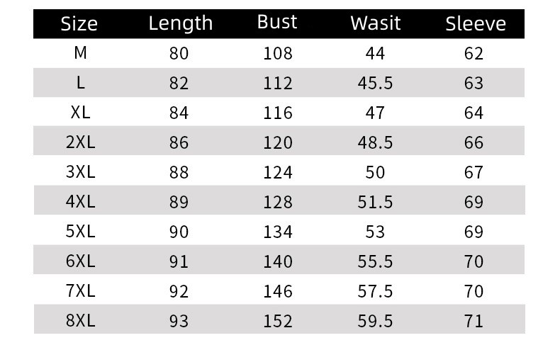Size:M,L,XL,2XL,3XL,4XL,5XL,6XL,7XL,8XL