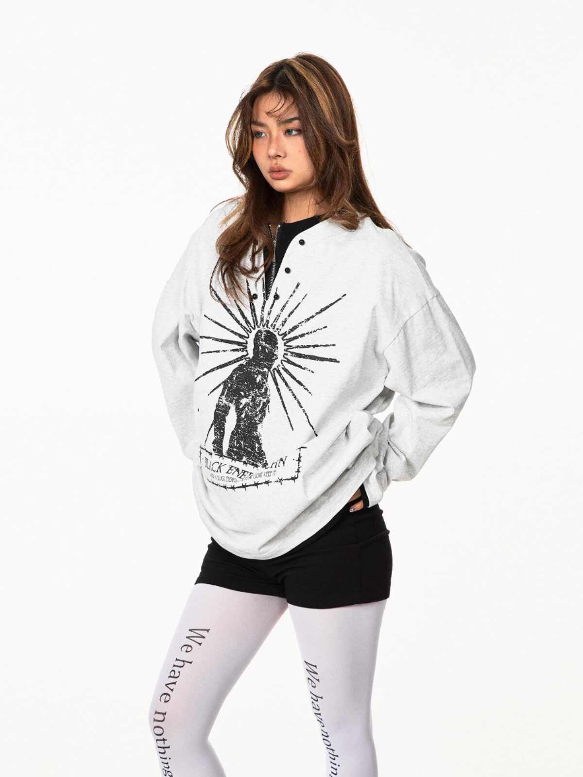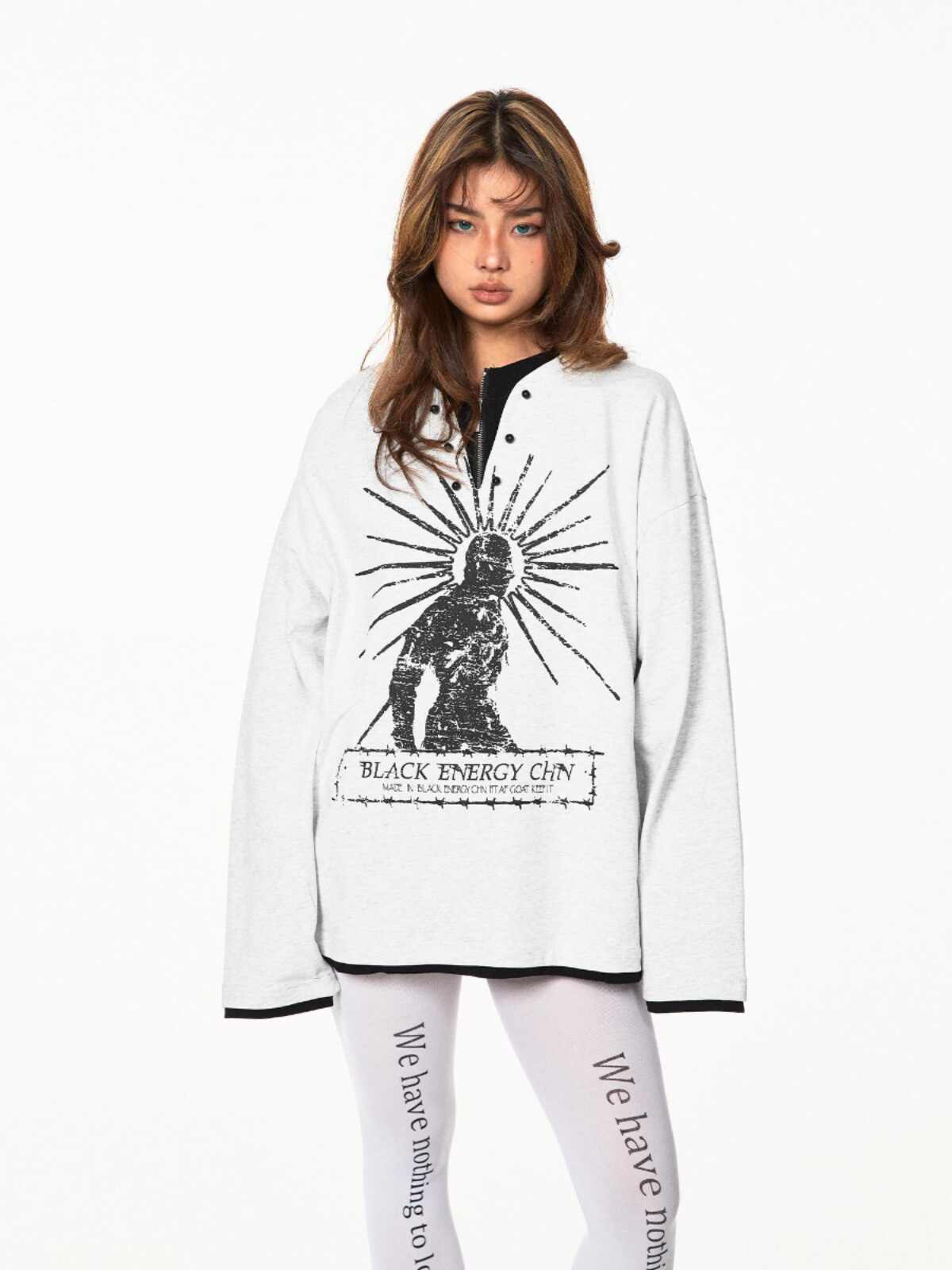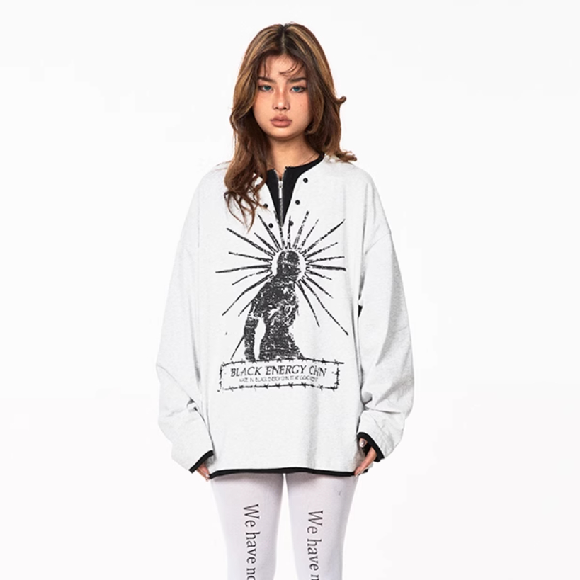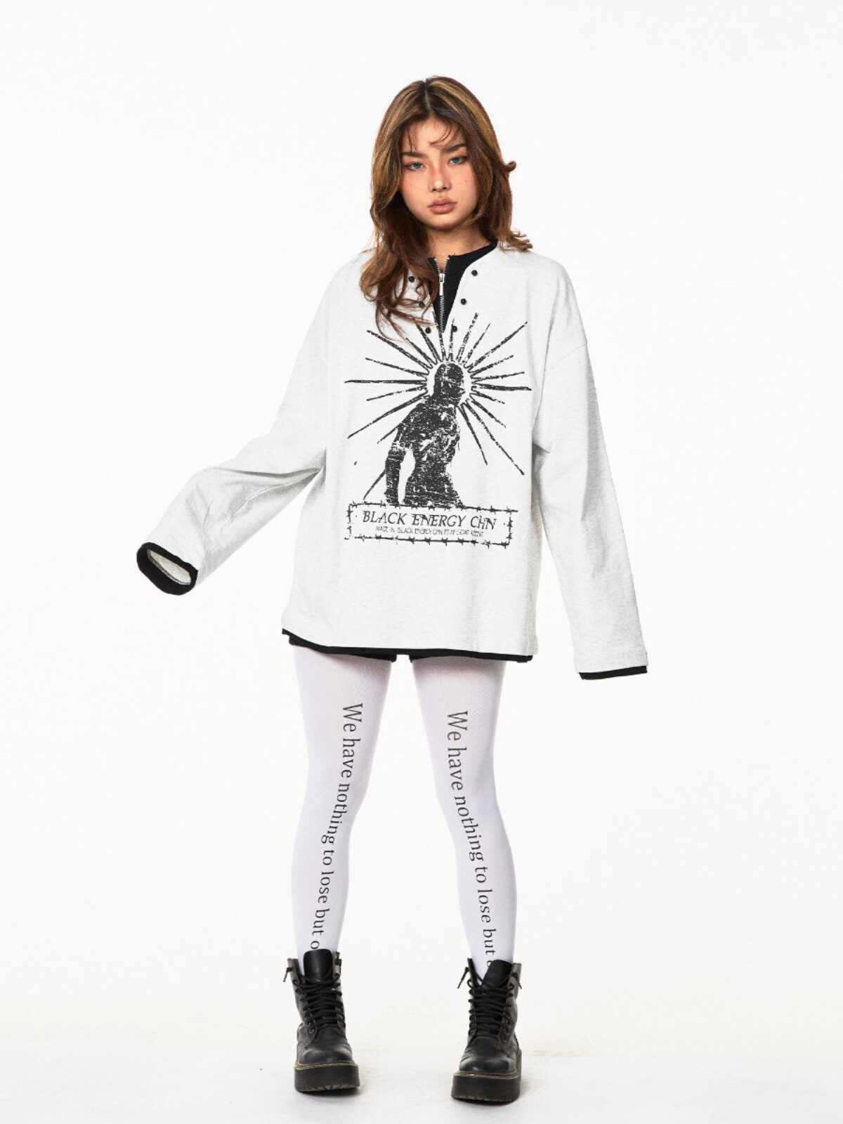 Fake Two-piece Printed T-shirt Women's Long Sleeve Top