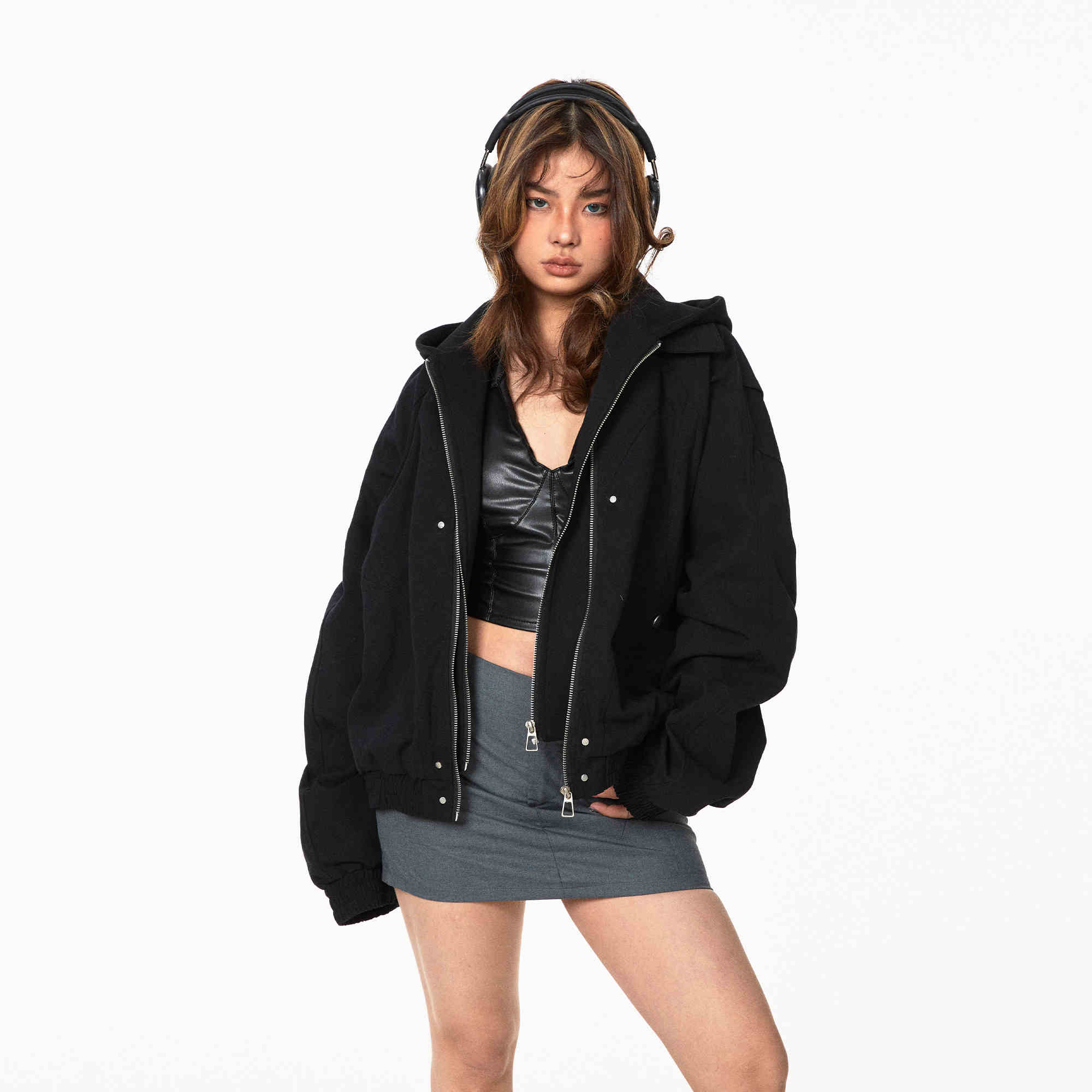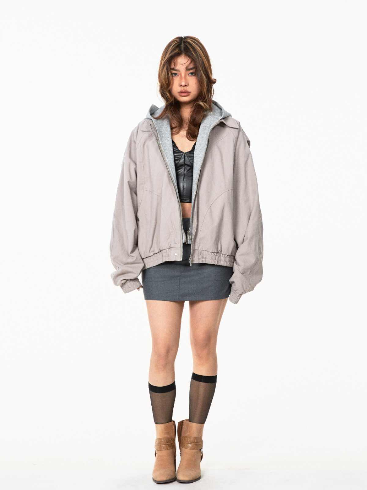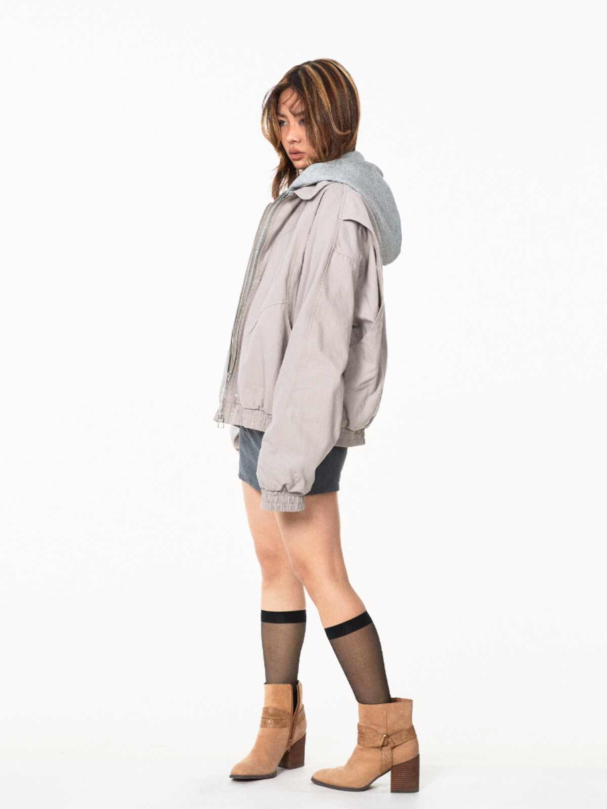 Fake Two Pieces Hooded Workwear Coats Female Cropped Jacket