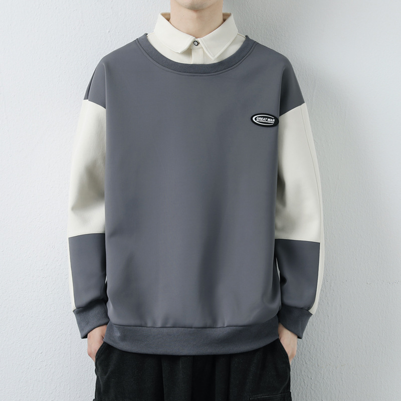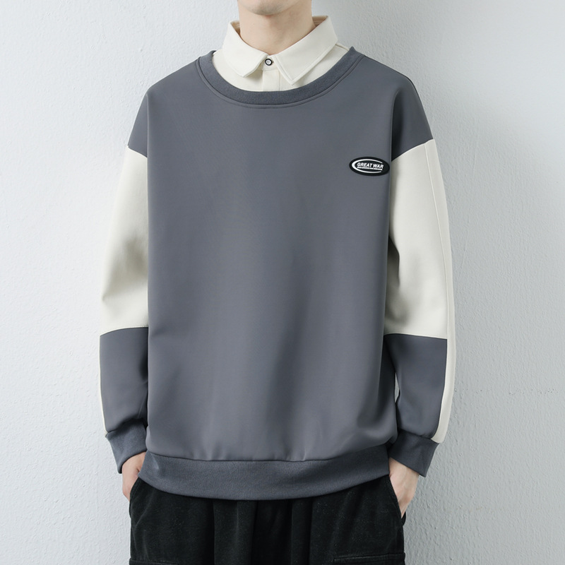 Fake Two Pieces Lapel Sweater Men's Spring And Autumn