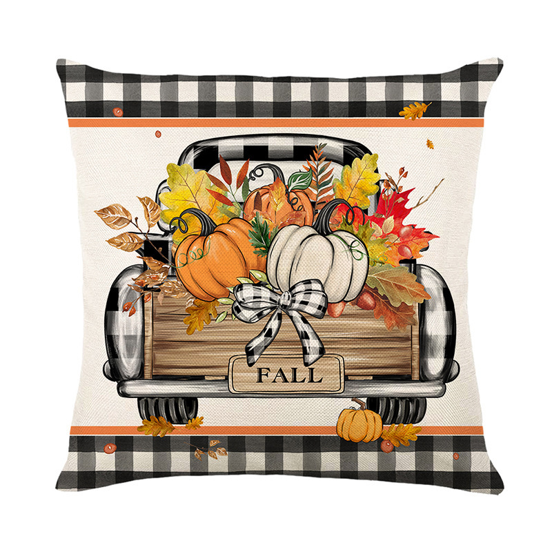 Fall Pumpkin Truck Sunflowers Home Sweet Home Throw Pillow Covers, 18 X 18 Inch Autumn Thankful Grateful Blessed Harvest Floral Decorations For Sofa Couch