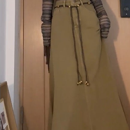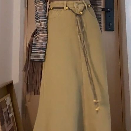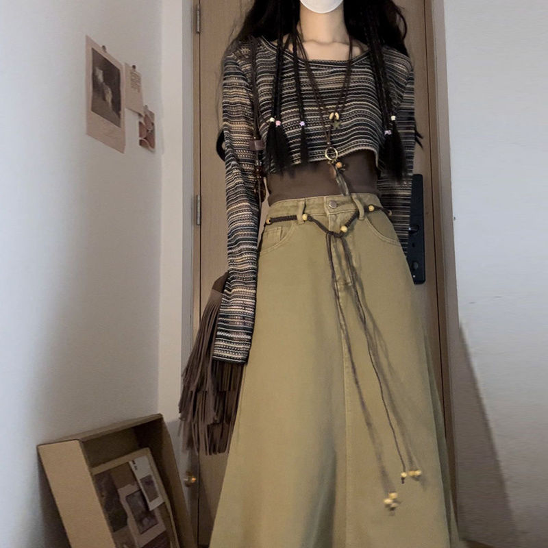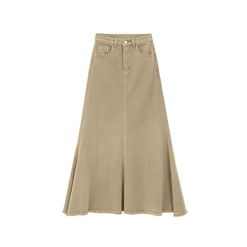 Fall Retro Hong Kong Style Women's High Waist Denim Skirt