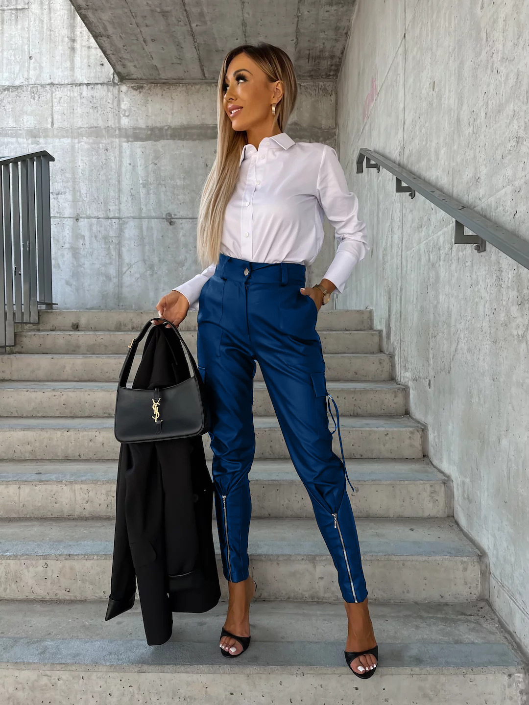 Fall Winter Fashion Slim PU Leather Waist Skinny Trousers Pockets