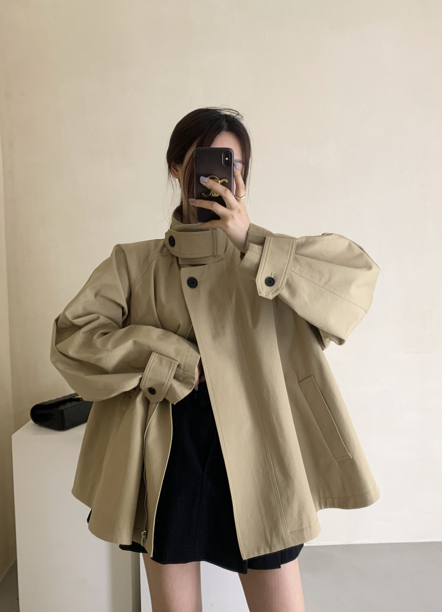 Fall Winter Stand Collar Skirt Elegant Trench Coat