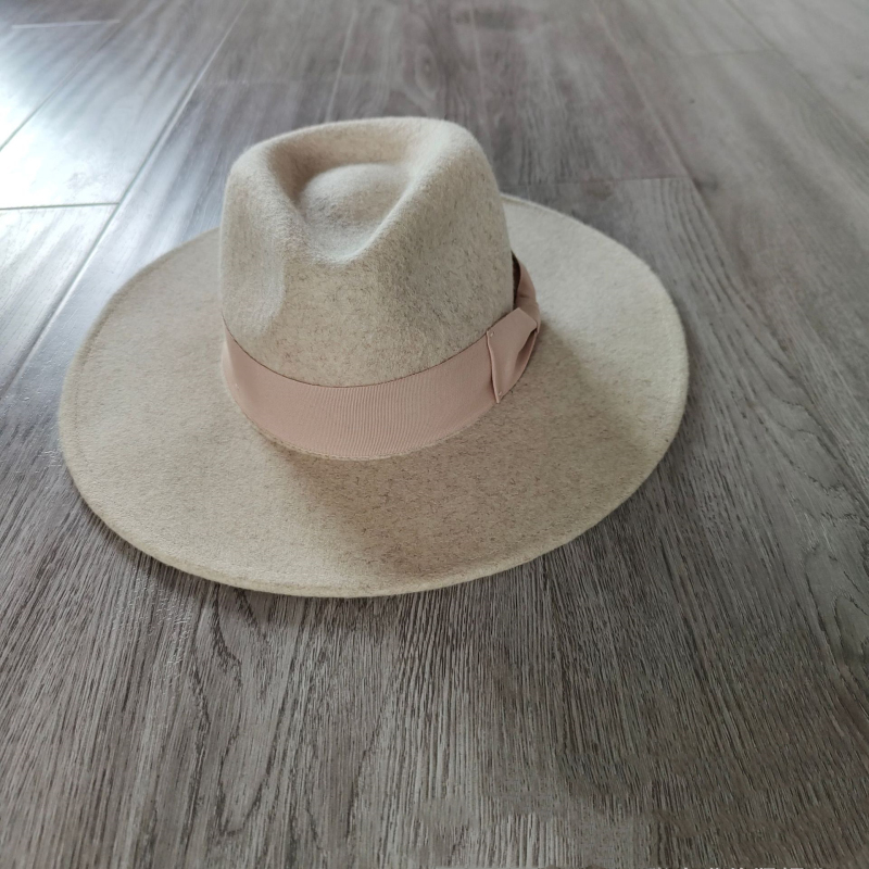 Color: Jazz Oatmeal Mixed Felt Hat + Oatmeal Bow