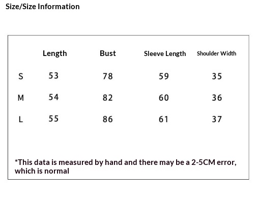 1. Asian sizes are 1 to 2 sizes smaller than European and American people. Choose the larger size if your size between two sizes. Please allow 2-3cm differences due to manual measurement. 2. Please check the size chart carefully before you buy the item, if you don't know how to choose size, please contact our customer service. 3.As you know, the different computers display colors differently, the color of the actual item may vary slightly from the following images.