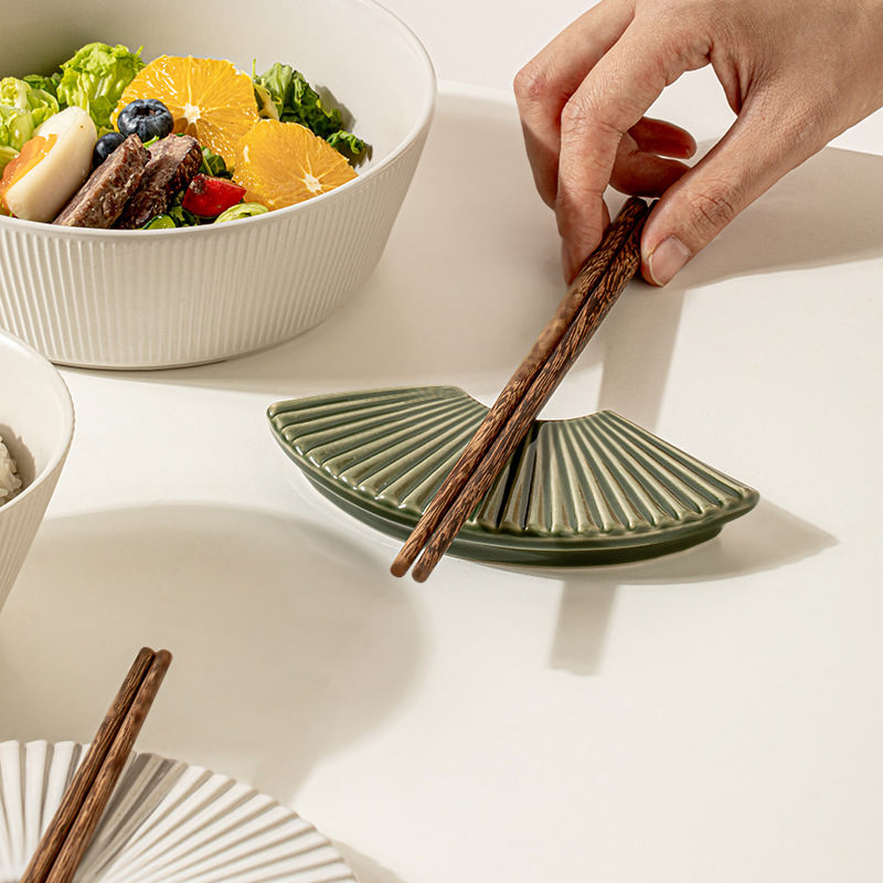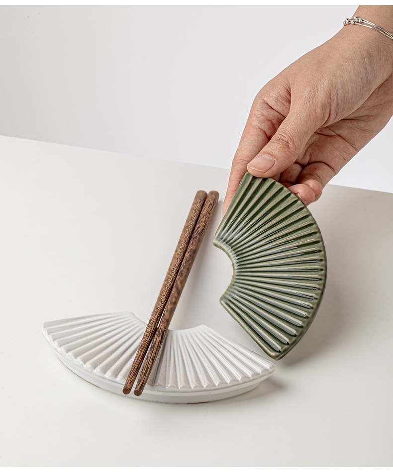 Color classification: folding fan-relief chopstick holder-green folding fan-relief chopstick holder-White