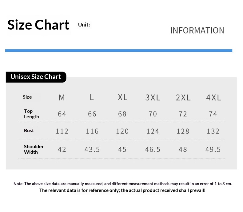 Sizes: M, L, XL, 2XL, 3XL, 4XL