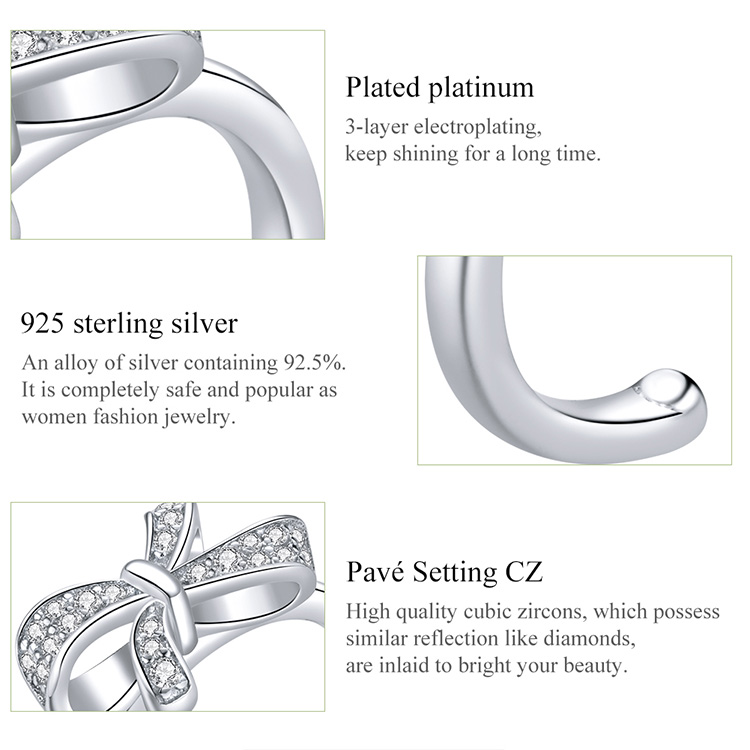 Material: 925 silver + platinum plated + zircon, with a silver content of 92.5%