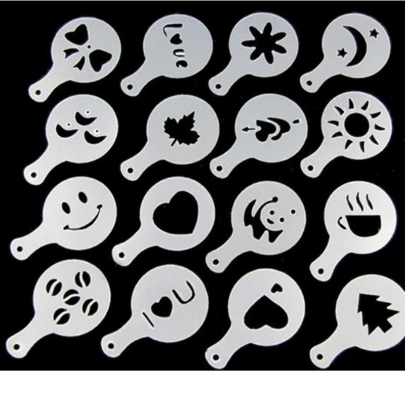 Description: LIXYMO 16PCS Plastic Cafe Foam Spray Template Barista Stencils Decoration Tool Garland Mold Fancy Coffee Printing Flower Model