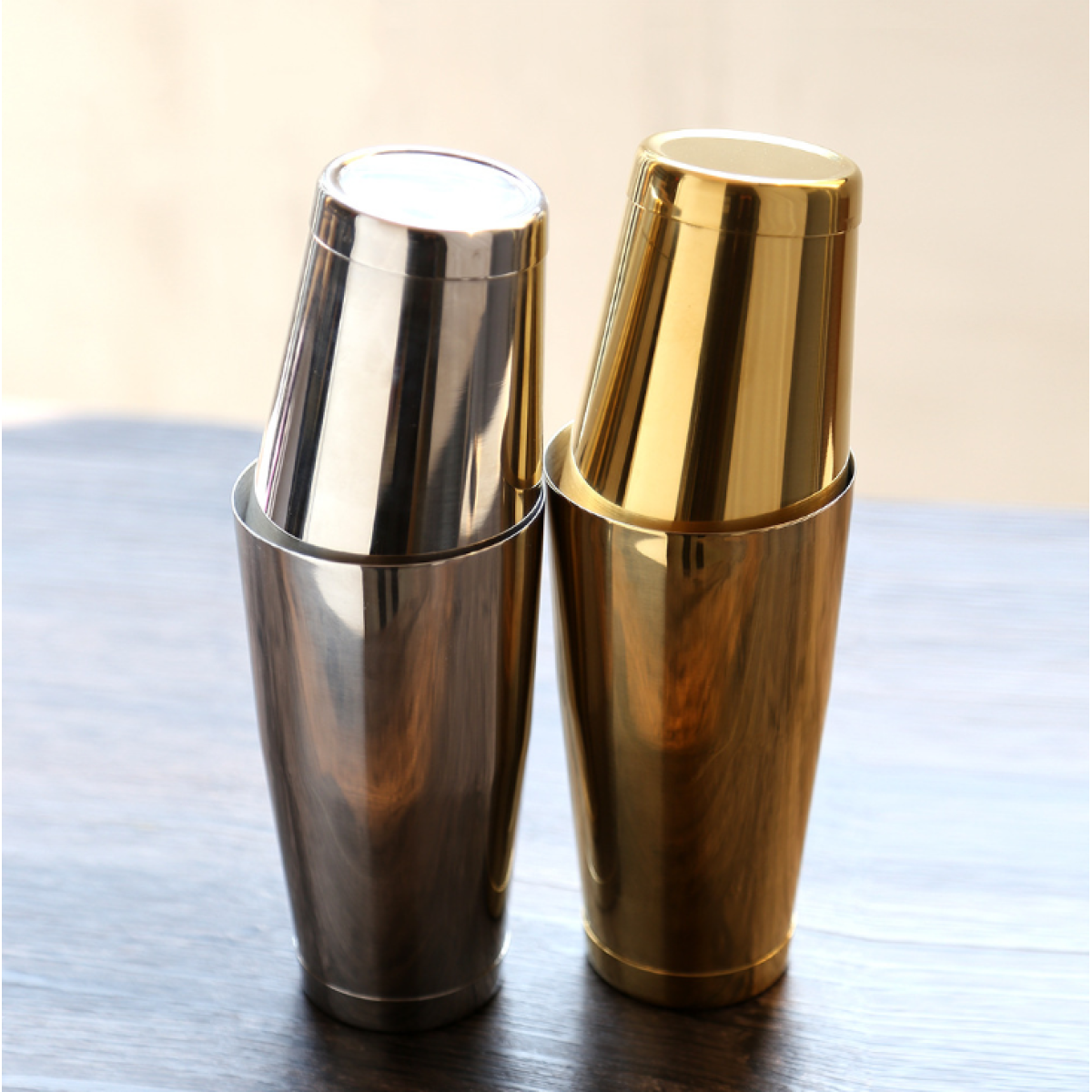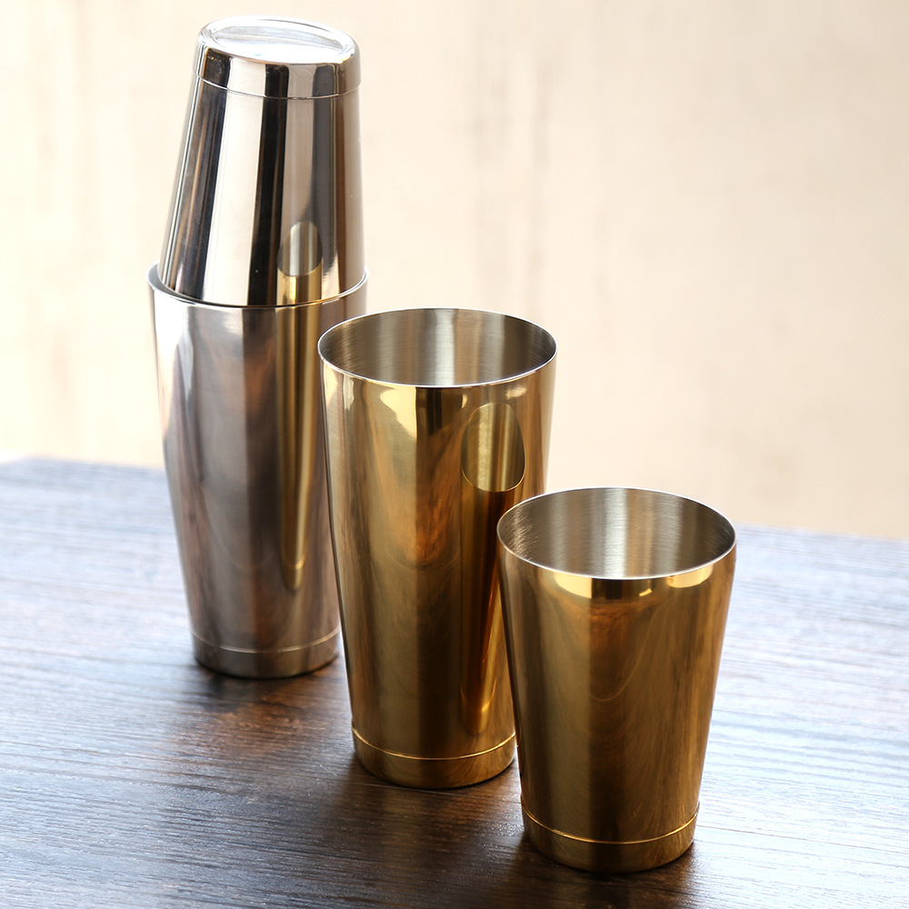 This stainless steel Boston shaker is the cheapest and easiest way.