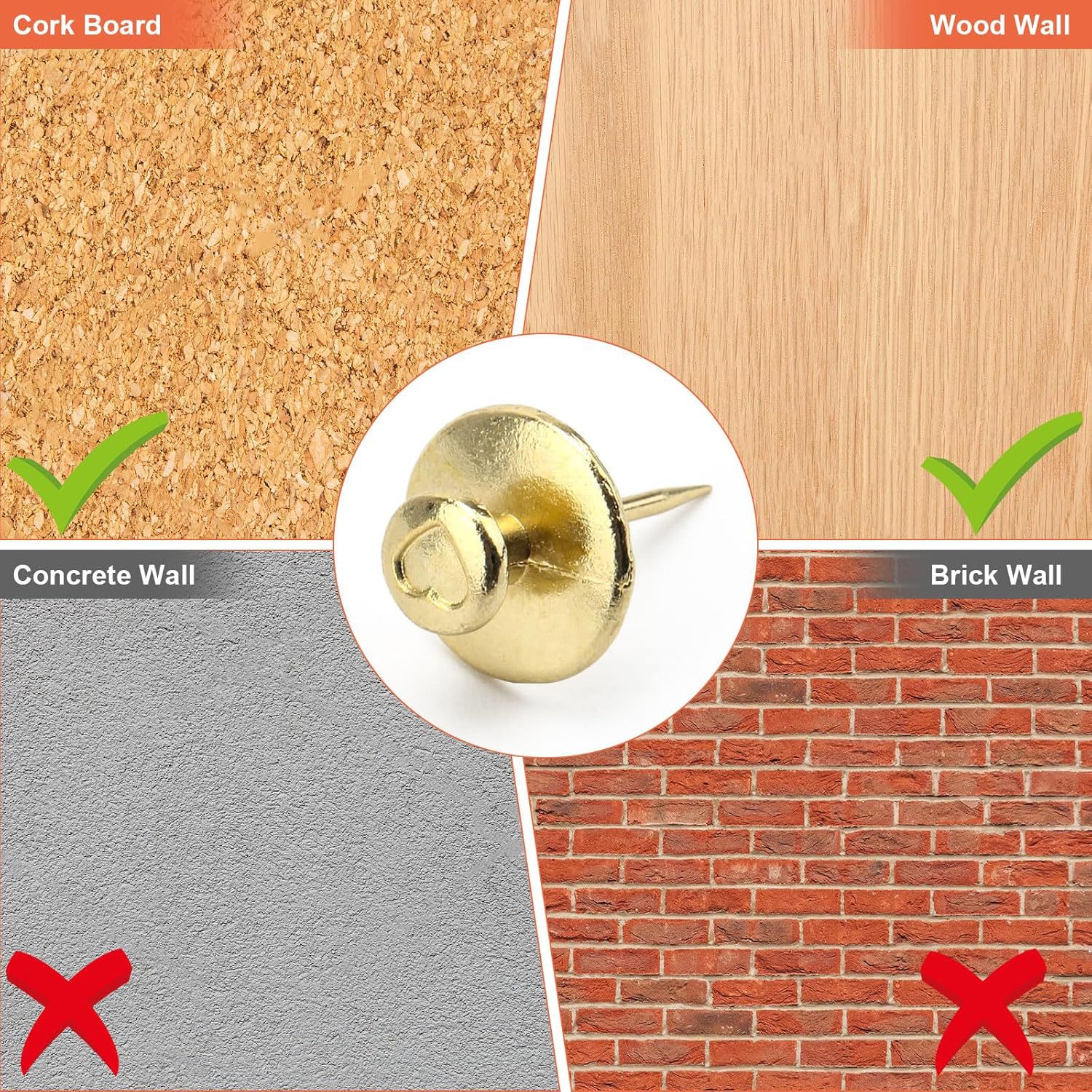 Specifications: single black Push Pin, single silver Push Pin, single gold Push Pin