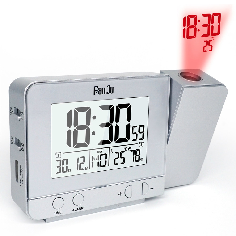 FanJu FJ3531 Projection Alarm Clock With Temperature And Time Projection USB Charger Indoor Temperature And Humidity Desk Clock