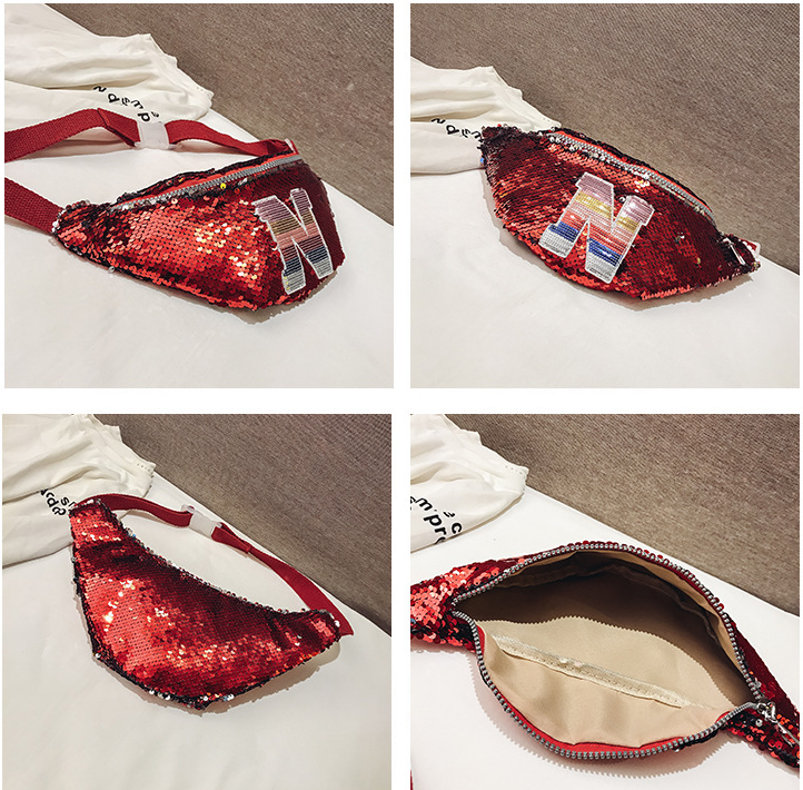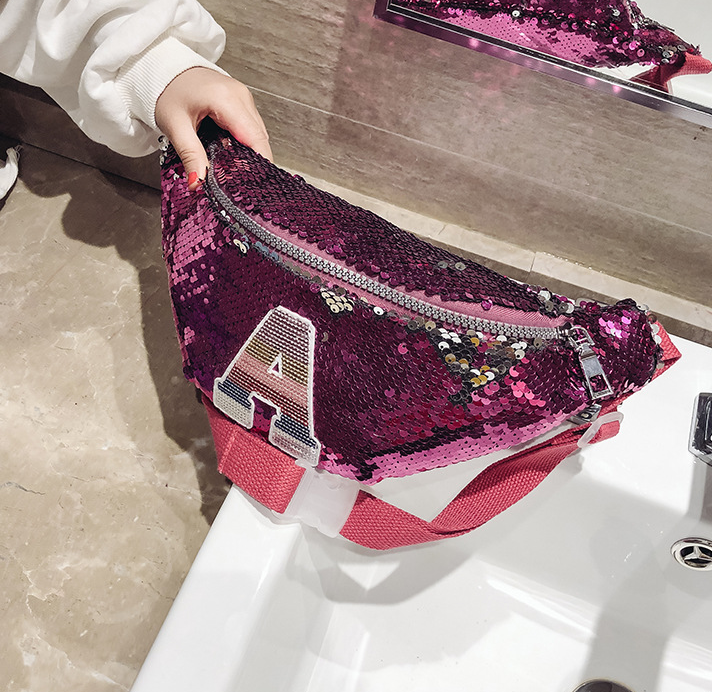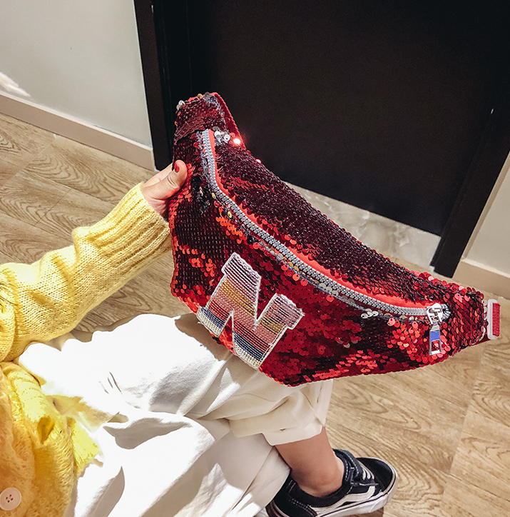 Item Name: Bum Bag Material: Polyester, Sequins Gender: Children's Style: Fashion Features: Capital Letter, Sequins Decor, Zipper Closure Size: 29cm x 14cm x 2cm/11.42" x 5.51" x 0.79" (Approx.)