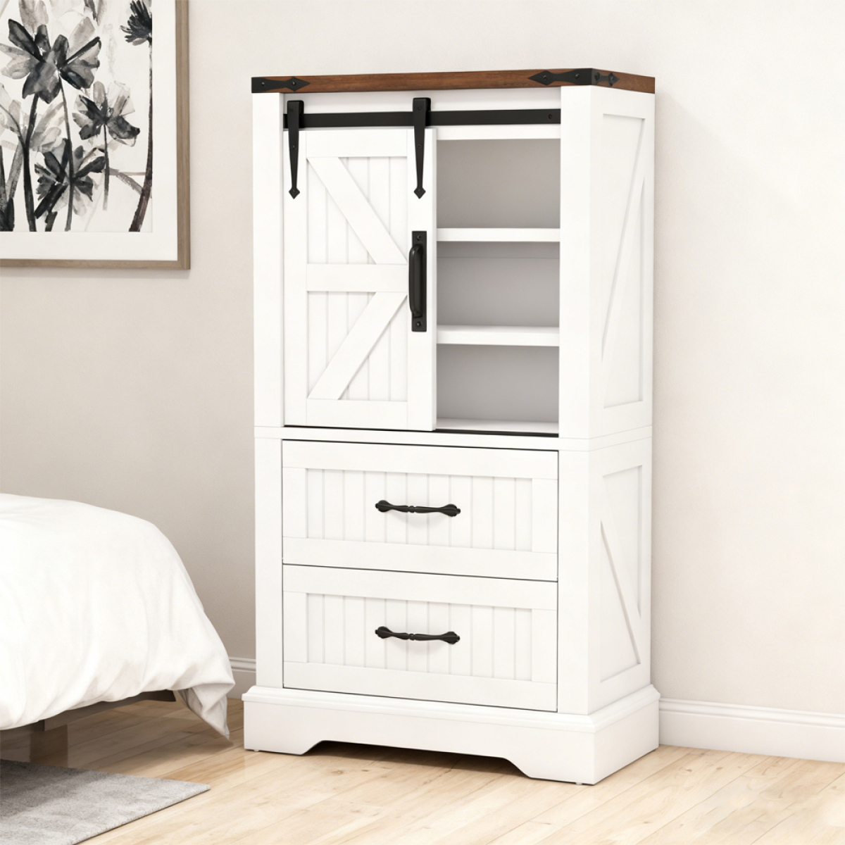 • Say Goodbye to Chaos: The bathroom floor cabinet has a sliding barn door that allows easy access to stored items. Additionally, the top area complements display space and 2 large drawers provide hidden storage space for bathroom essentials.
