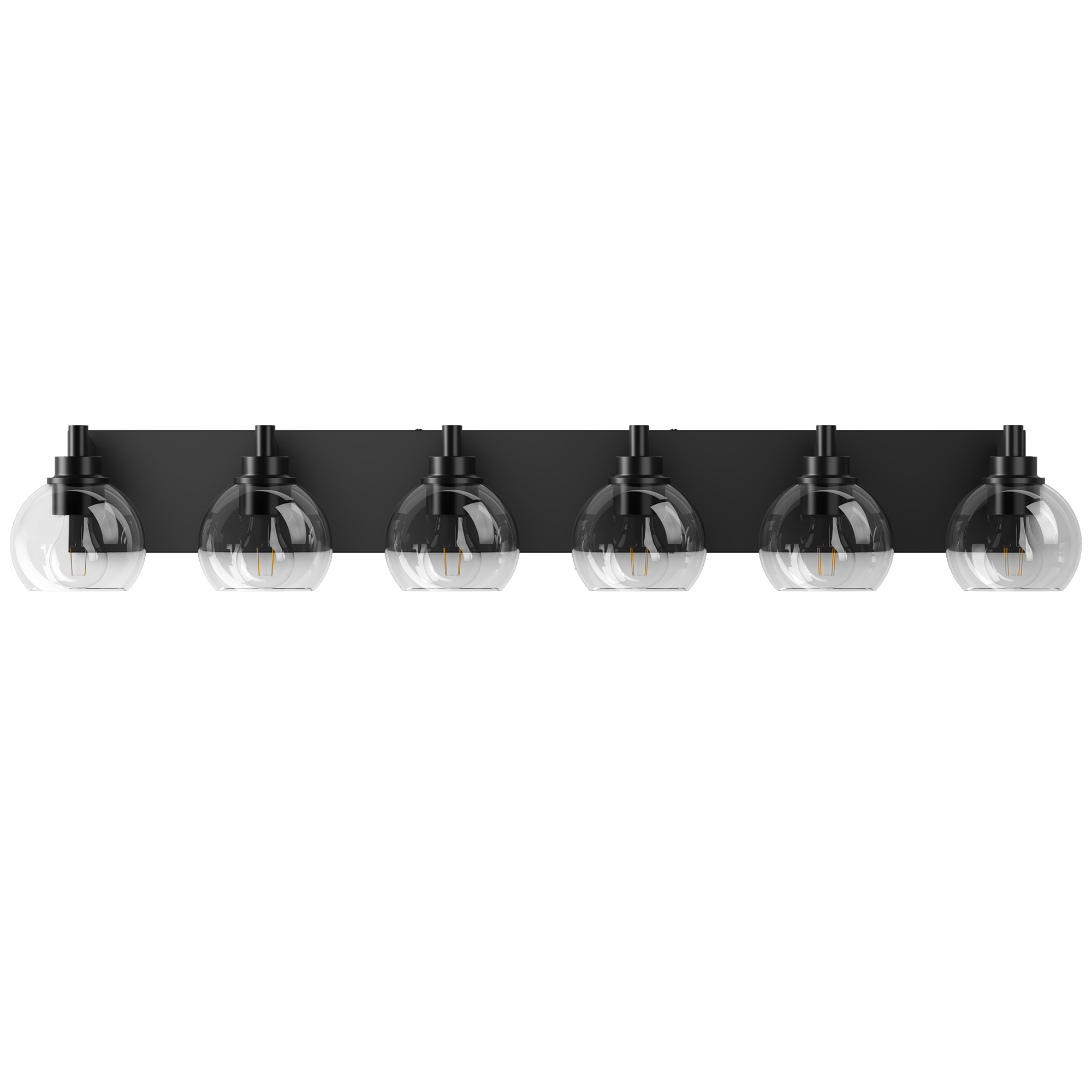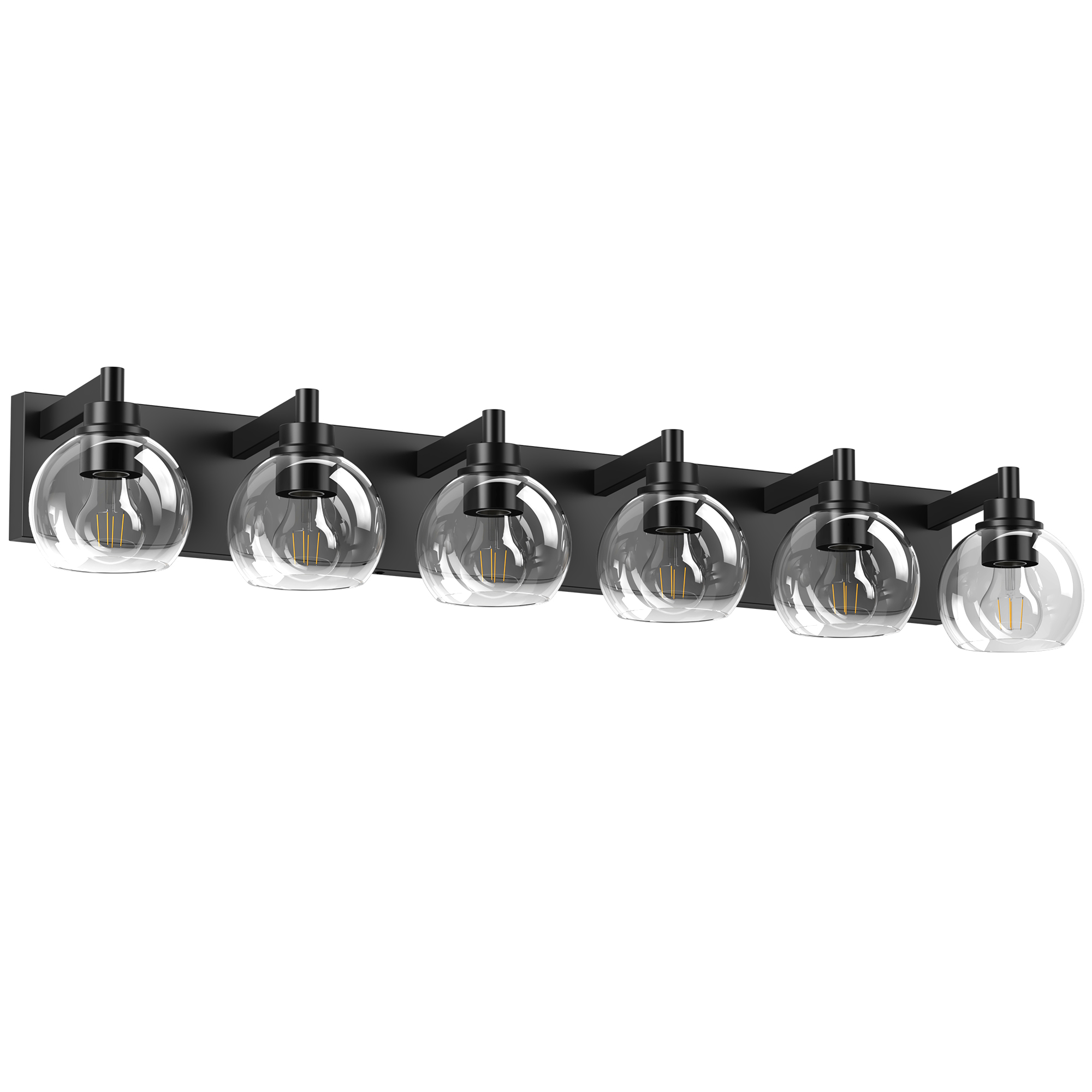 Elegant Design: The bathroom light fixtures has matte black finish, which is moisture-proof and rust-proof. Unlike other traditional design, our vanity light sport clean lines and clear glass globe shade, Simple and elegant light fixtures make your home warmer.Easy to Install: The design of vanity mirror light allows for this sconce to be installed in an upwards or downwards position. And This vanity lighting package included all mounting hardware, Just need to tighten the glass shade, connect the hardwired and fixed the light fixture.E26 Standard Sockets: The vanity lights for bathroom require 6 x E26 medium base bulbs (Max 60W for each light). This vanity lighting fixture can be used with dimmer switches and dimmer bulbs for a dimming effect. (Note: bulbs and dimmers are not included.)Wide Application: This bathroom vanity light is suitable for mid-century, modern, classic, vintage and more styles. you can use this bathroom light in the bathroom vanity, kitchen, mirror cabinets, art display, powder room, makeup mirror cabinets, It can also be used as wall light.