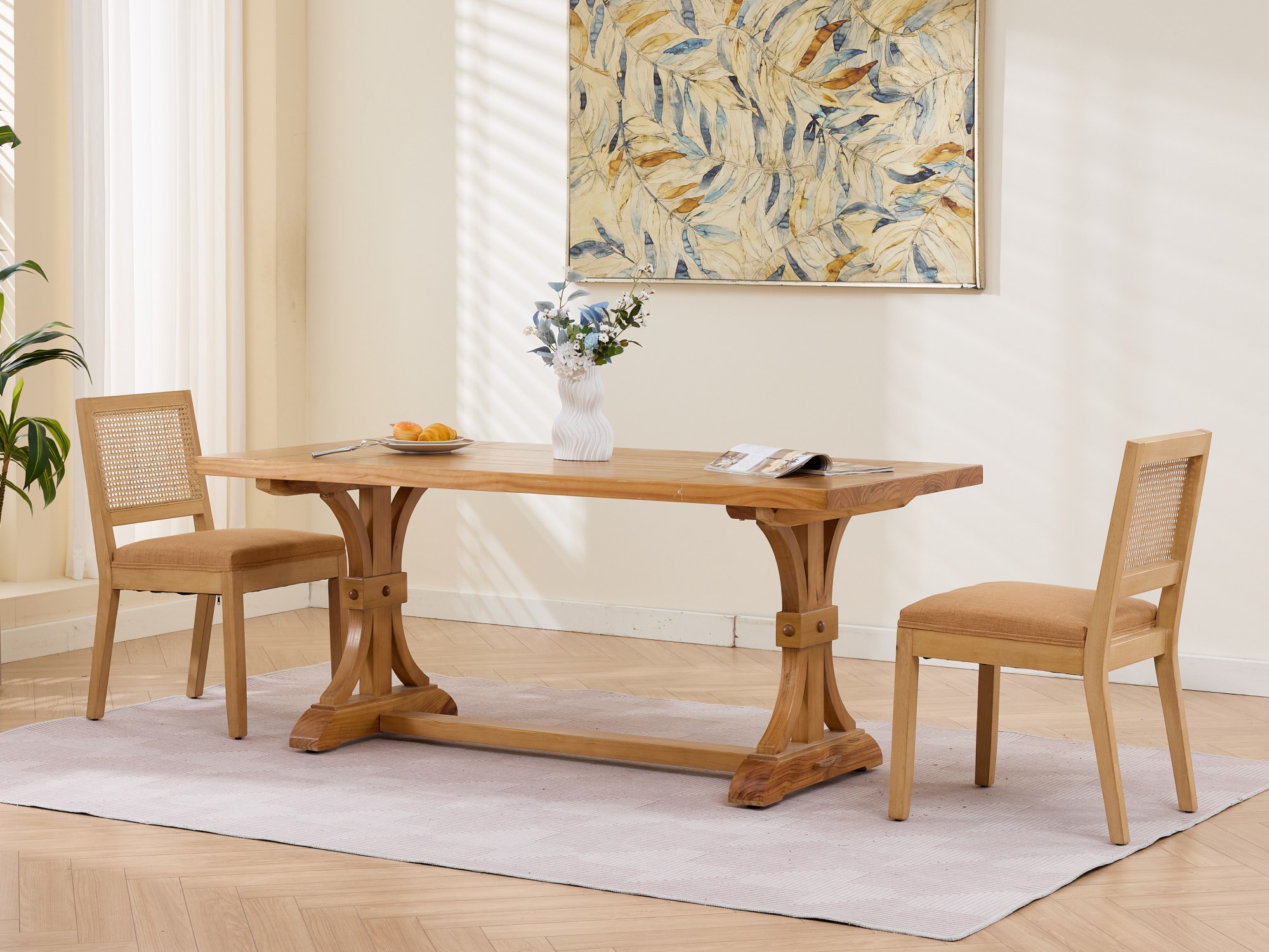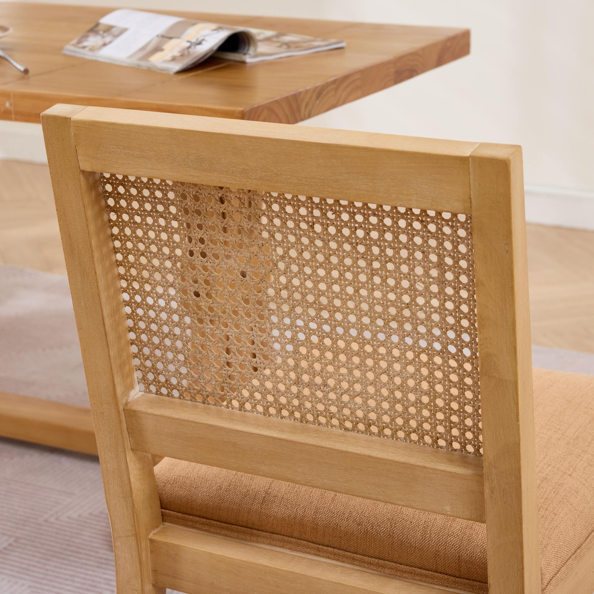 Product Name:Farmhouse Rattan Dining Chairs Set of 2, Mid Century Modern Kitchen & Dining Room Chairs, Cane Upholstered Kitchen Side Chair with Natural Hardwood Frame,Tan, SW1883TN