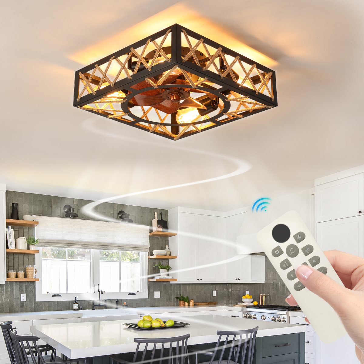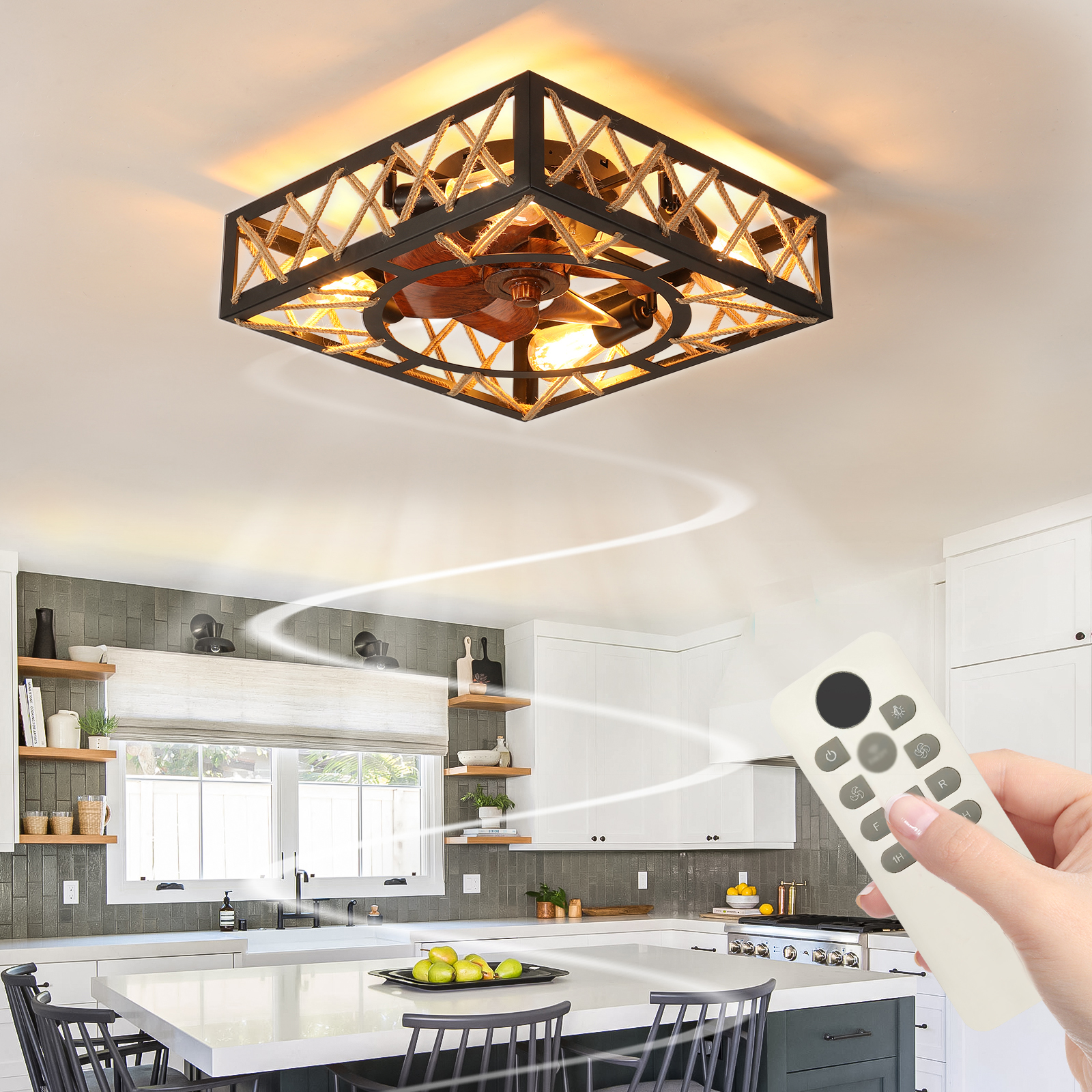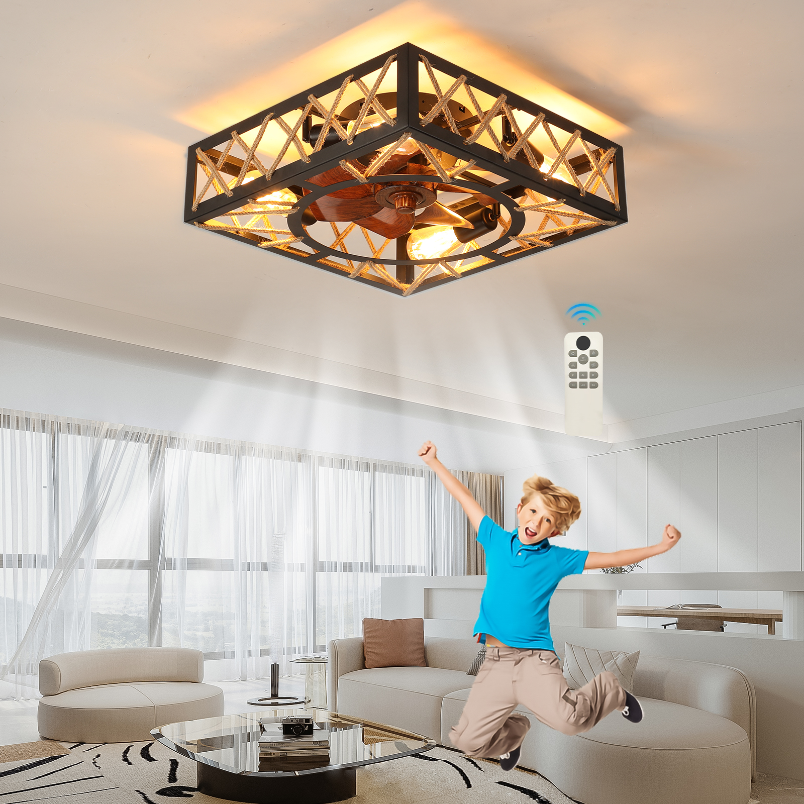 With a quick-installation design, the installation is very simple. The cage-type ceiling fan with a light is equipped with a remote control. It has 6 adjustable wind speeds and can be either reversed or forward.