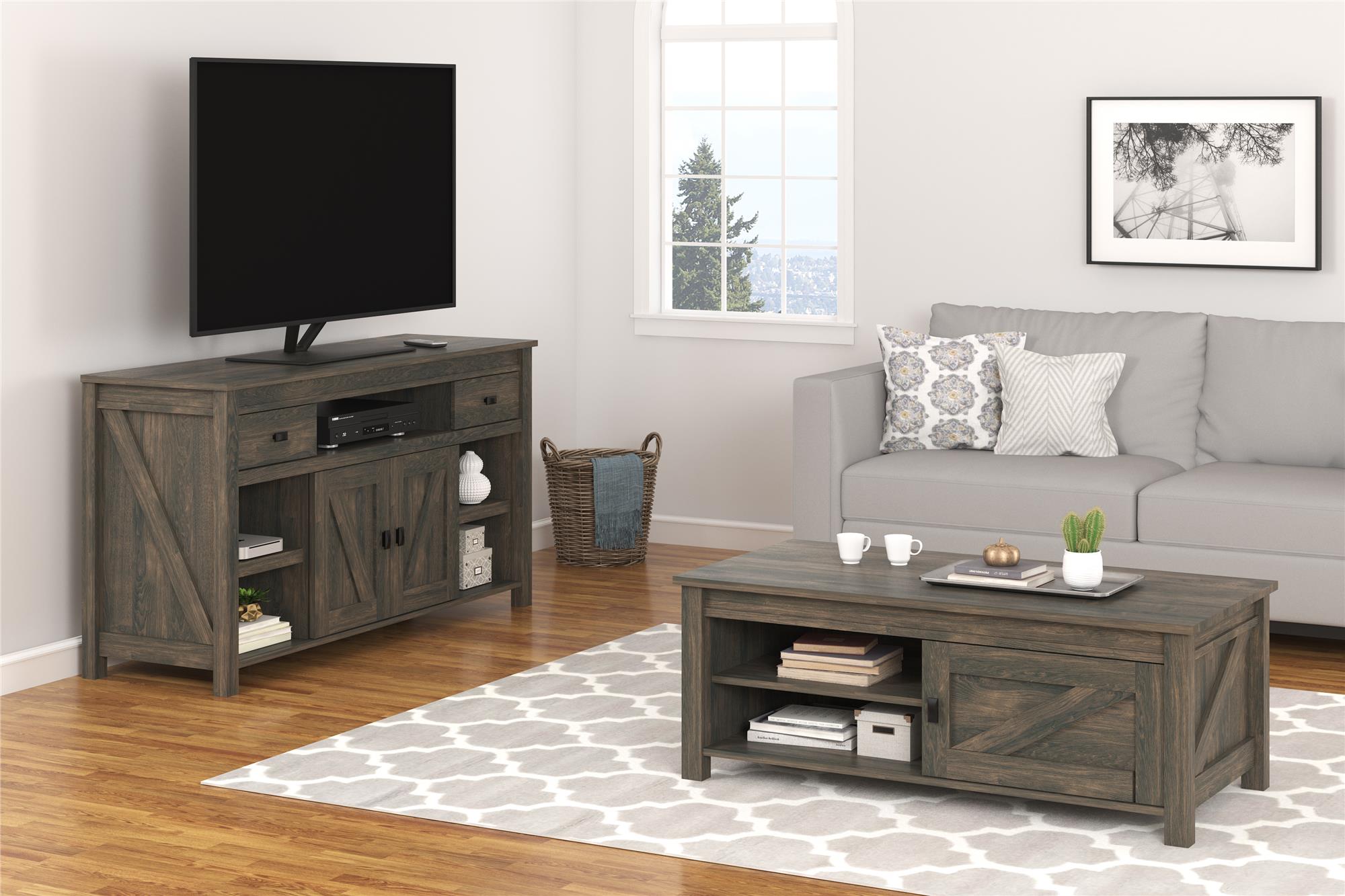 • Add a rustic country look to your living room with the Farmington TV Stand for TVs up to 60" wide
