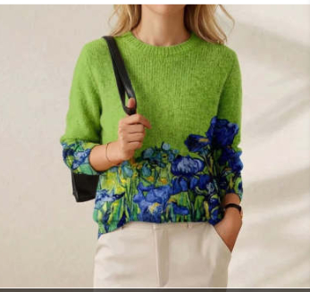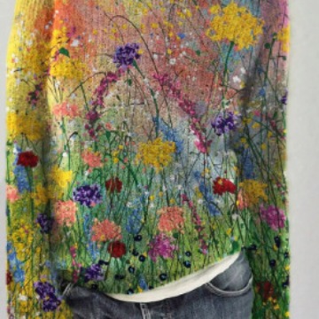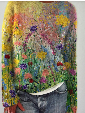 Fashion 3D Digital Three-dimensional Printing Round Neck Women's Sweater