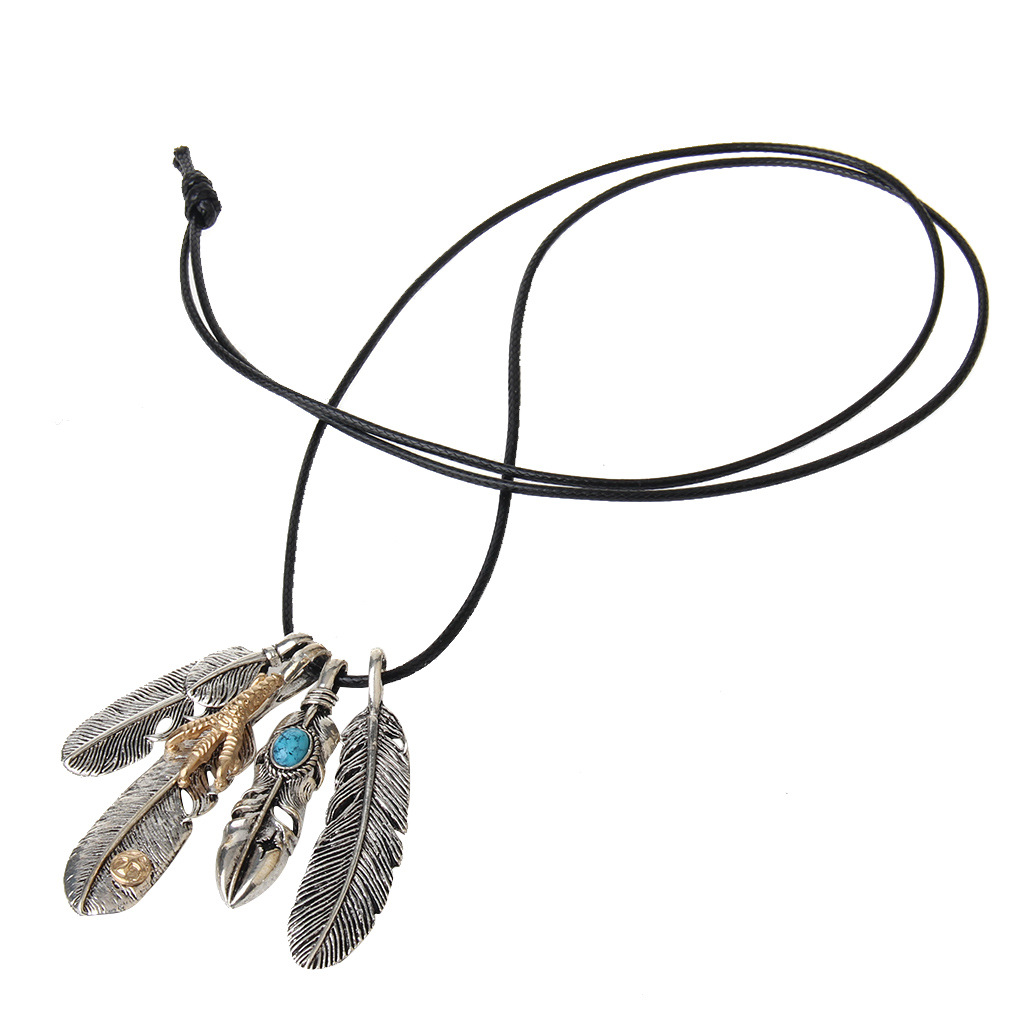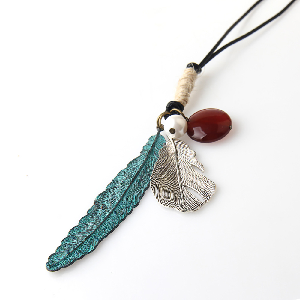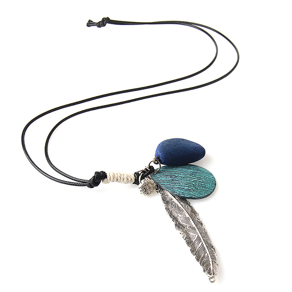 Color: rope loop, blue, turquoise feather, nut, red.