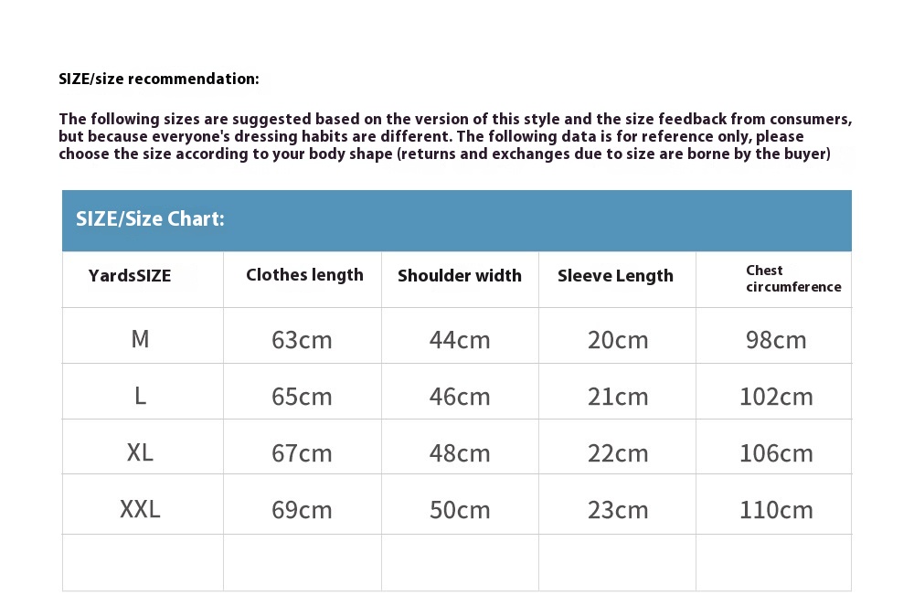 1. Asian sizes are 1 to 2 sizes smaller than European and American people. Choose the larger size if your size between two sizes. Please allow 2-3cm differences due to manual measurement. 2. Please check the size chart carefully before you buy the item, if you don't know how to choose size, please contact our customer service. 3.As you know, the different computers display colors differently, the color of the actual item may vary slightly from the following images.