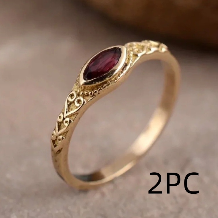 Fashion Ancient Gold Pattern Ruby Ring