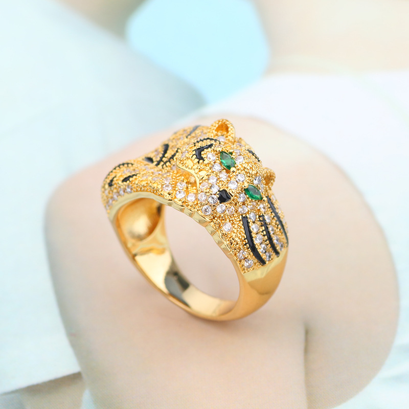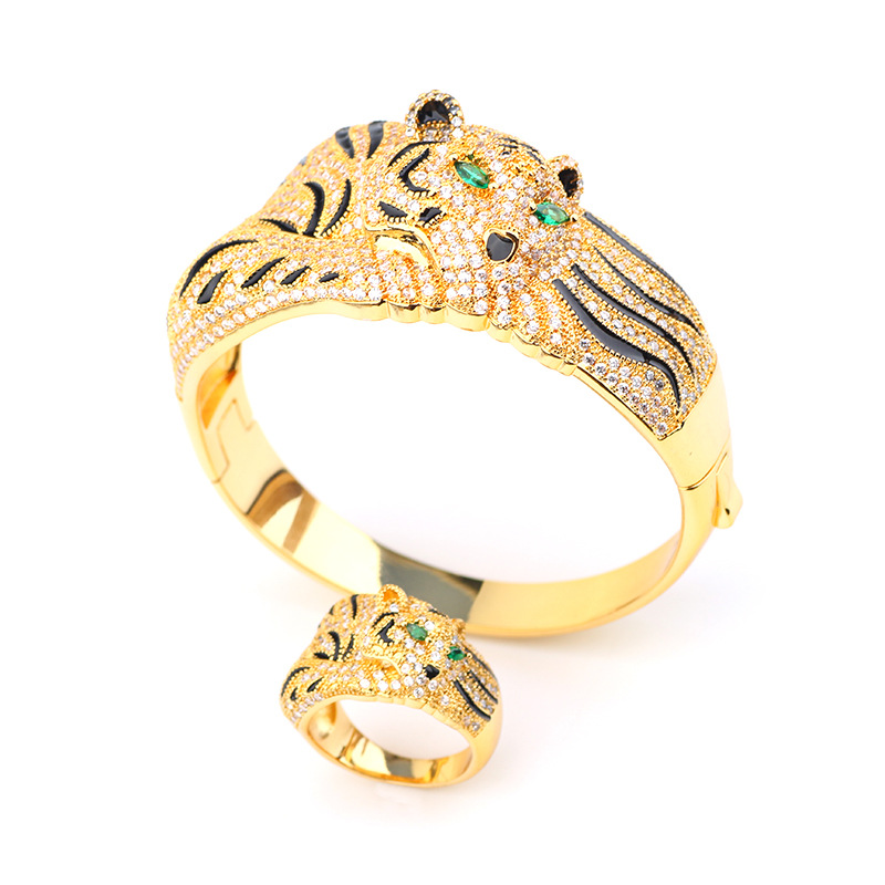 Fashion Big Leopard Full Rhinestone Bracelet Ring Set