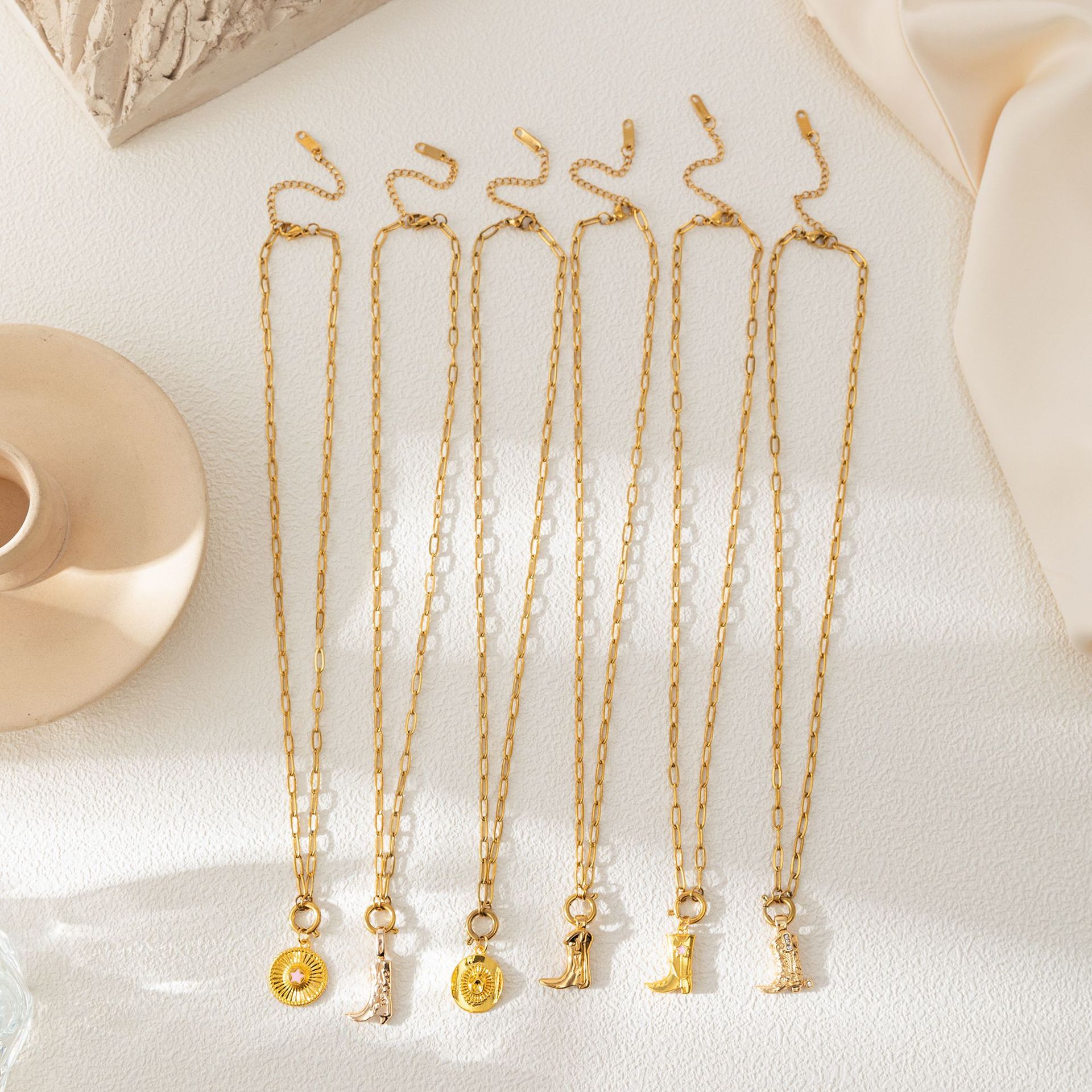 Color: five-pointed star hat (separate pendant), cowboy hat (separate pendant), boots A (separate pendant), Boots B (separate pendant), Boots C (separate pendant), boots D (separate pendant), clip open end ring (separate chain)