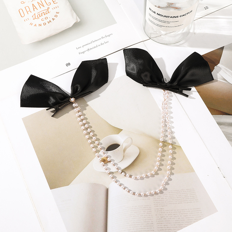 Color: Pearl tassel bow pair clip, bow pair clip, streamer pair clip, #black, #beige, #wine red