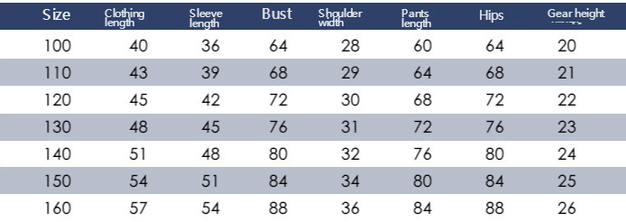 Size: 110cm, 120cm, 130cm, 140cm, 150cm, 160cm