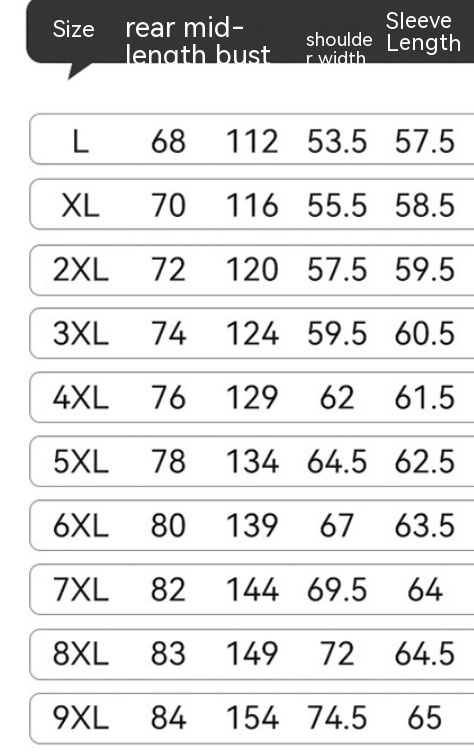 Size: L,XL,2XL,3XL,4XL,5XL,6XL,7XL,8XL,9XL