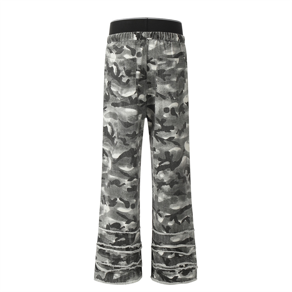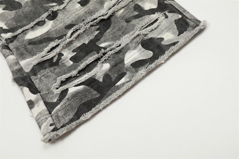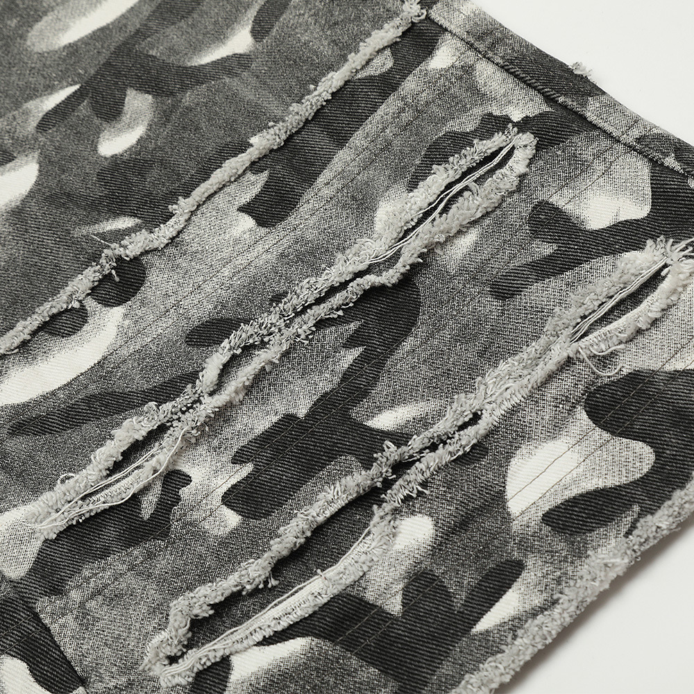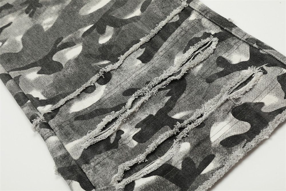 Fashion Camouflage Frayed Overalls Men's Pants