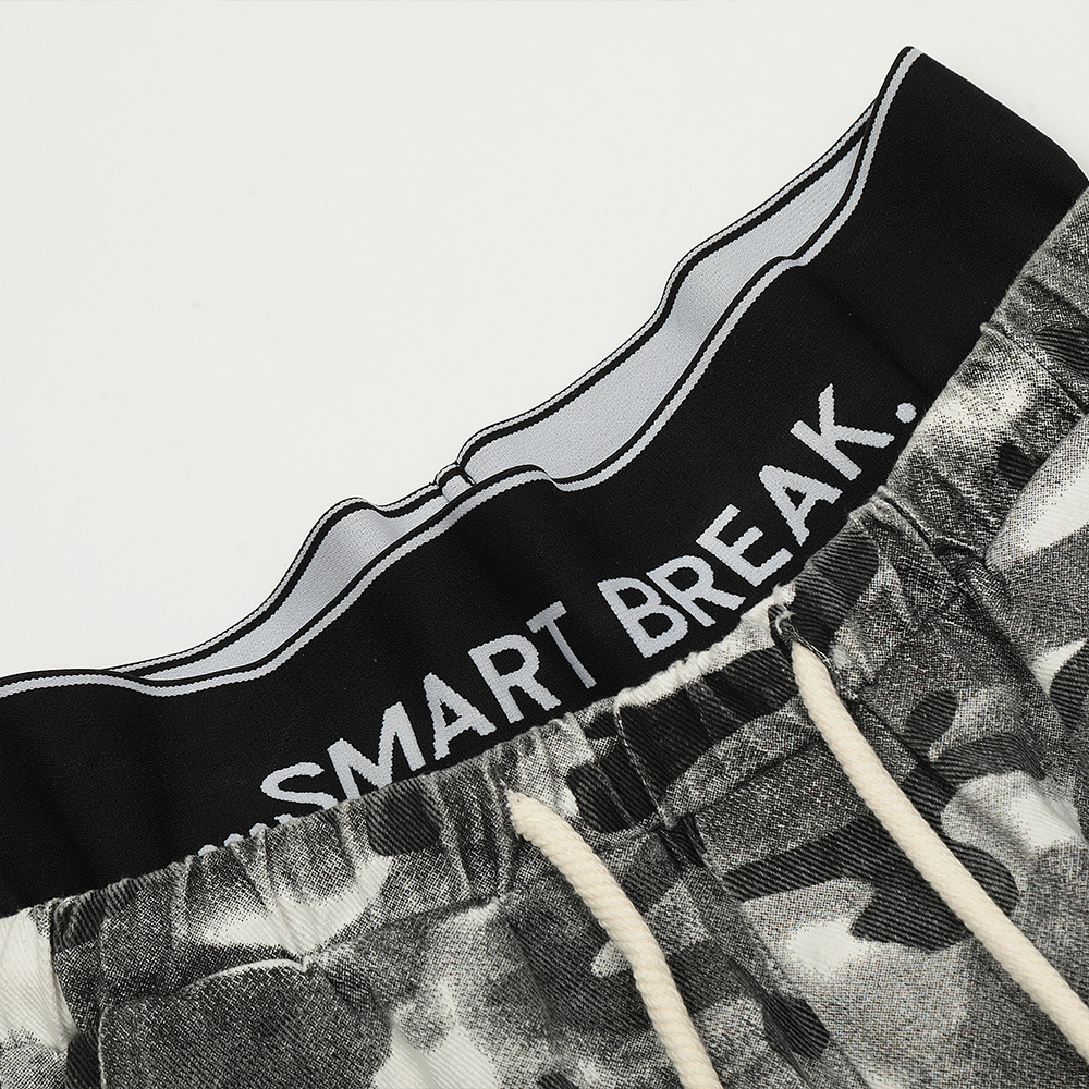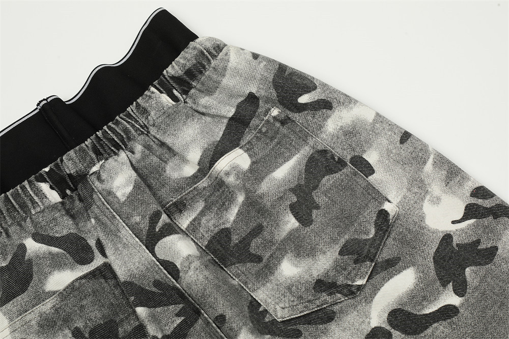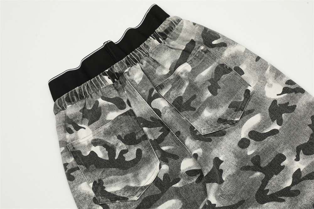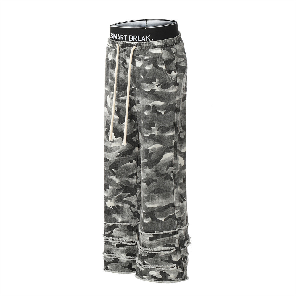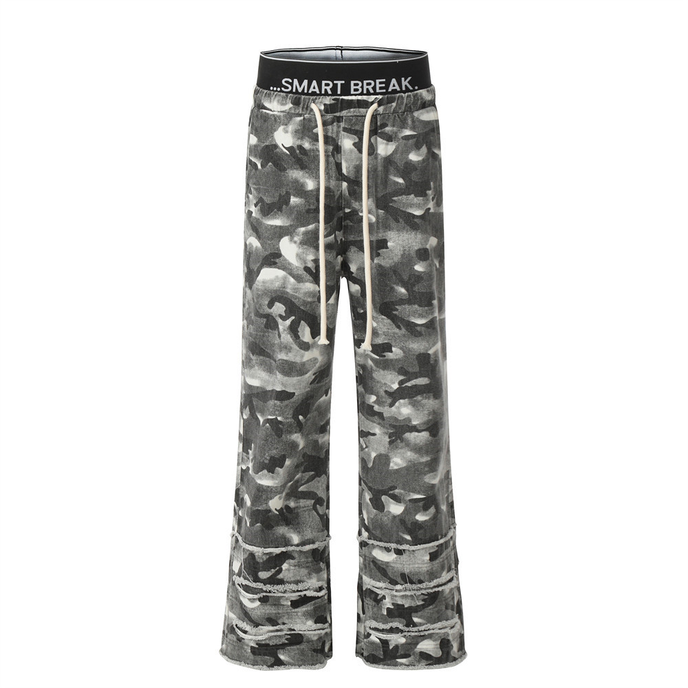 Fashion Camouflage Frayed Overalls Men's Pants