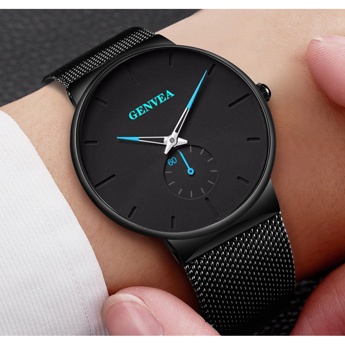 Color: black shell with rose gold needle and black belt, black shell with green needle and black belt, black shell with red needle and black belt, black shell with gray needle and black belt