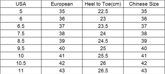 Sizes: 35, 36, 37, 38, 39, 40, 41, 42, 43