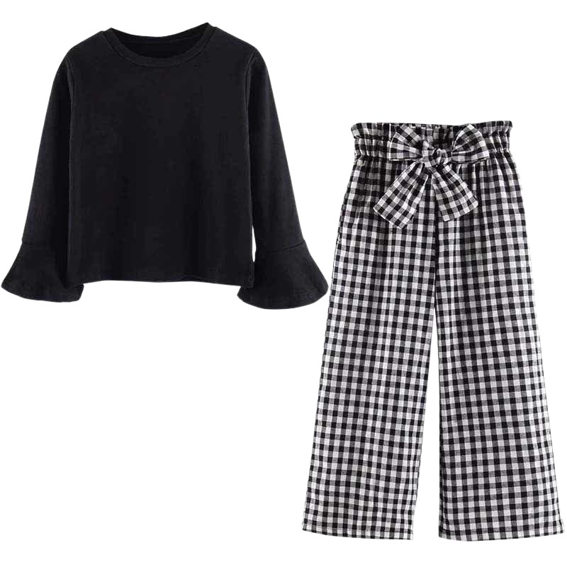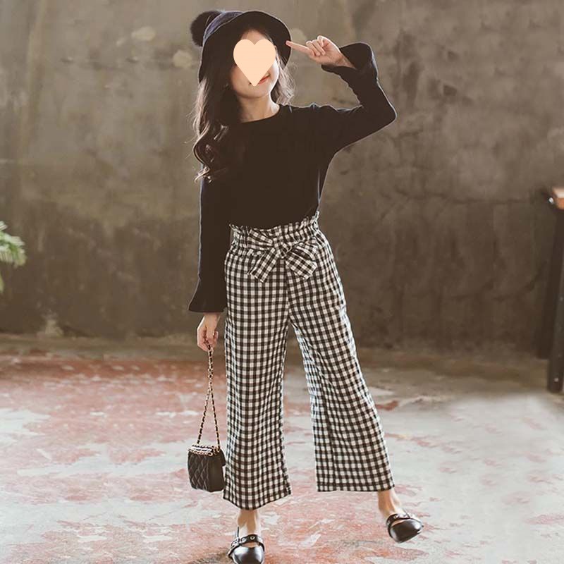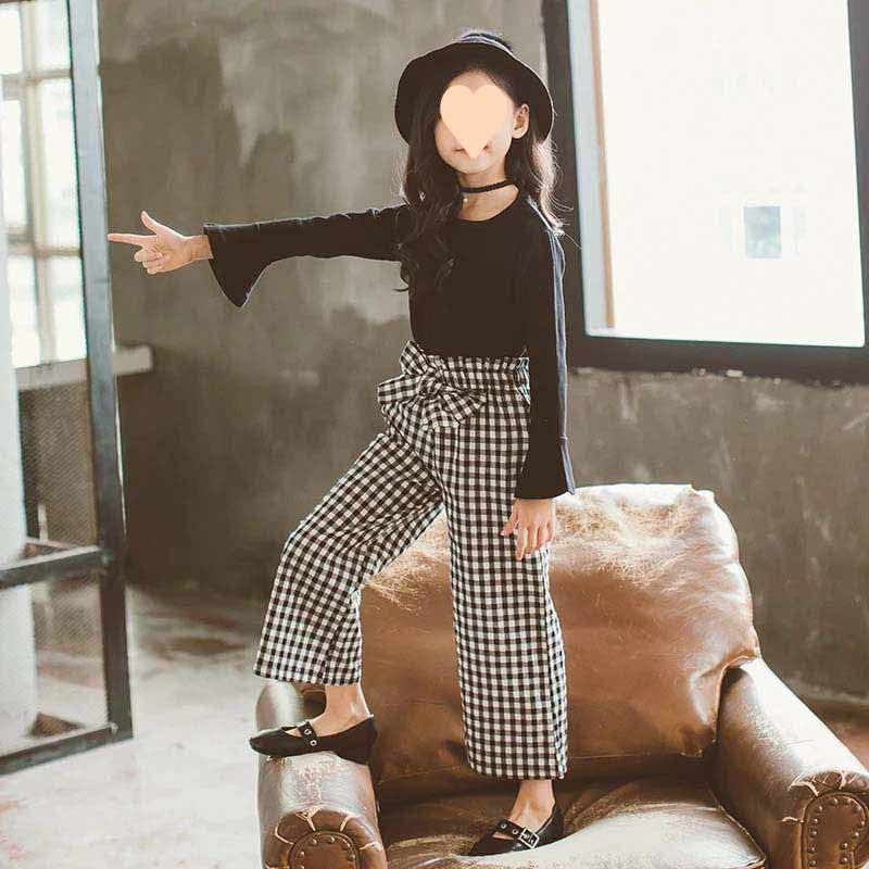 Fashion Children's Plaid Pants Two-piece Set