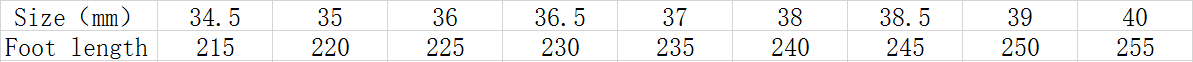 Size: 34.5, 35, 36, 36.5, 37, 38, 38.5, 39, 40, 40.5, 41, 42, 42.5, 43, 44, 45