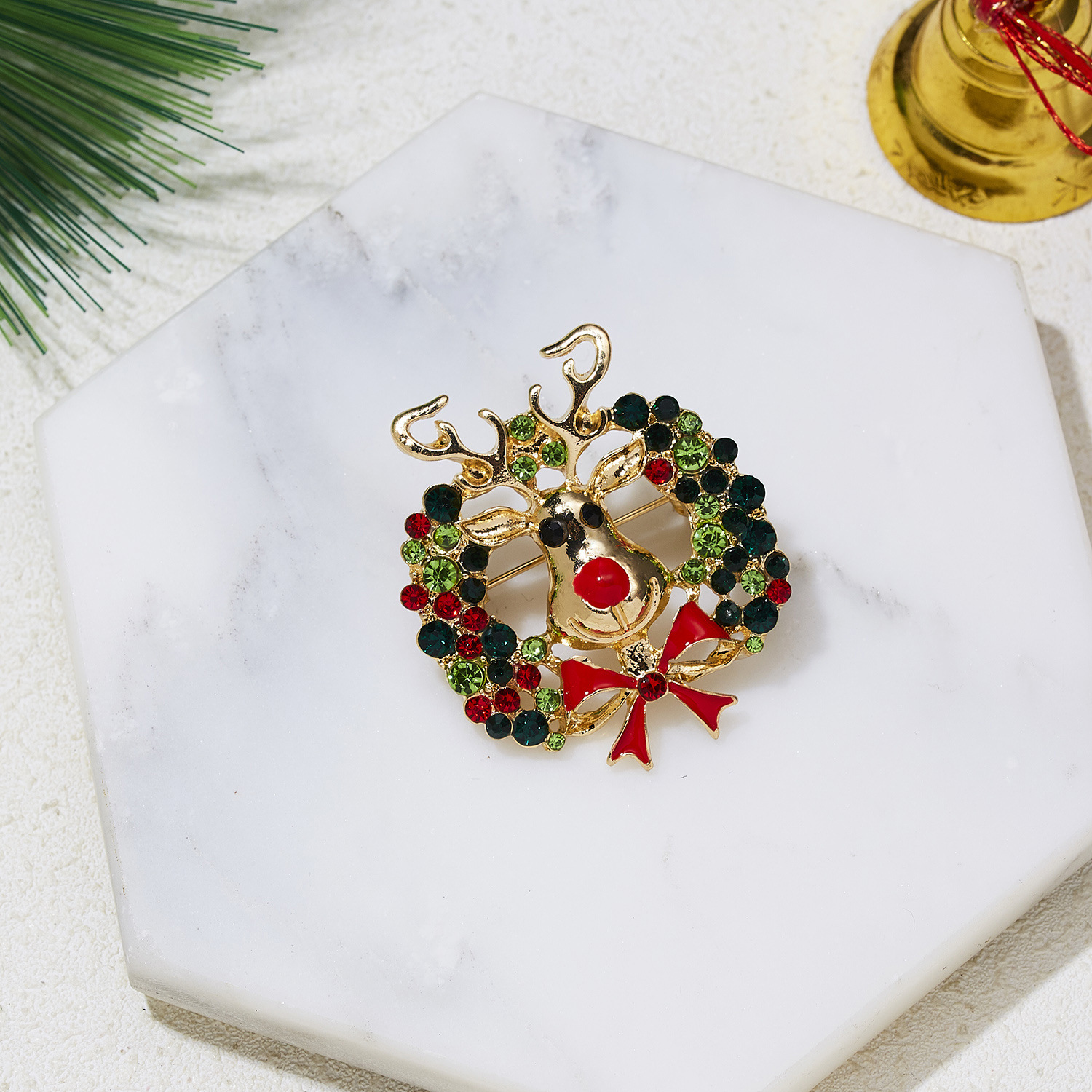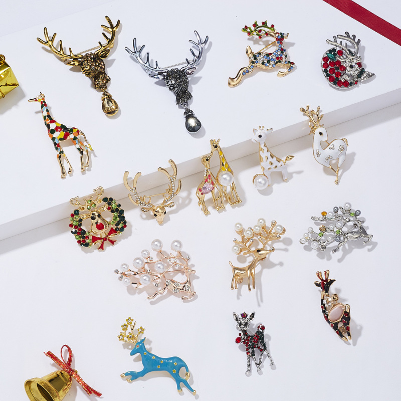 Fashion Christmas Elk Bow Rhinestone Painting Oil Brooch
