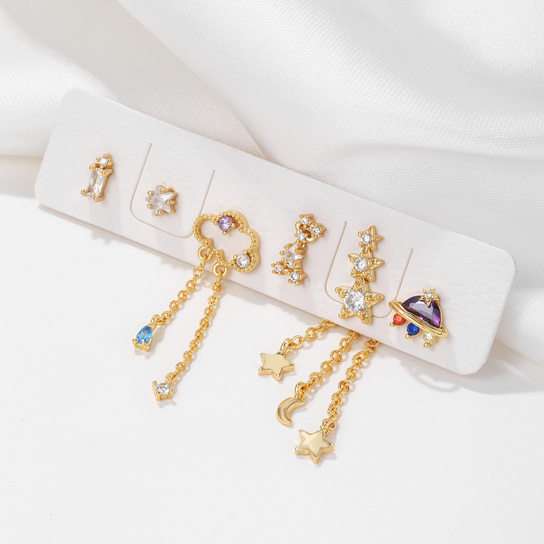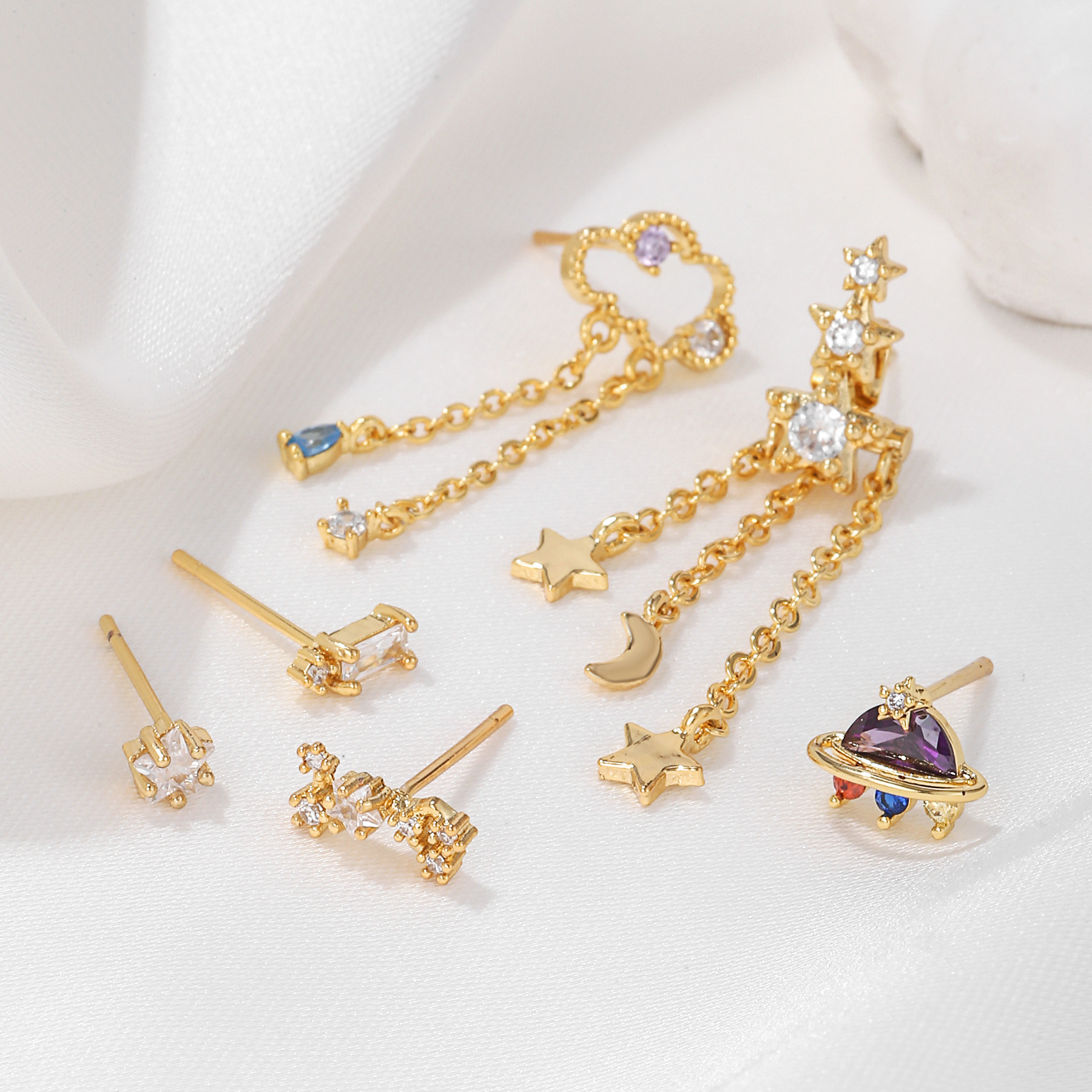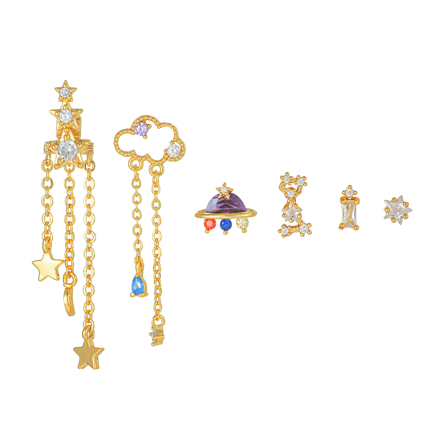 Product information:Treatment Process: inlaid zircon Color: TZ00156 Applicable population: Female Material: Copper Shape: Star