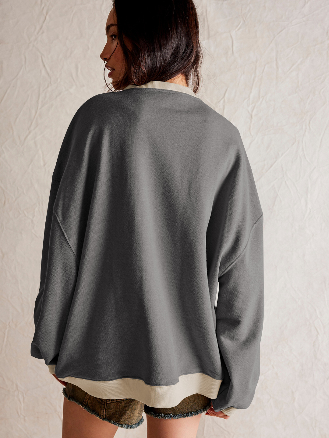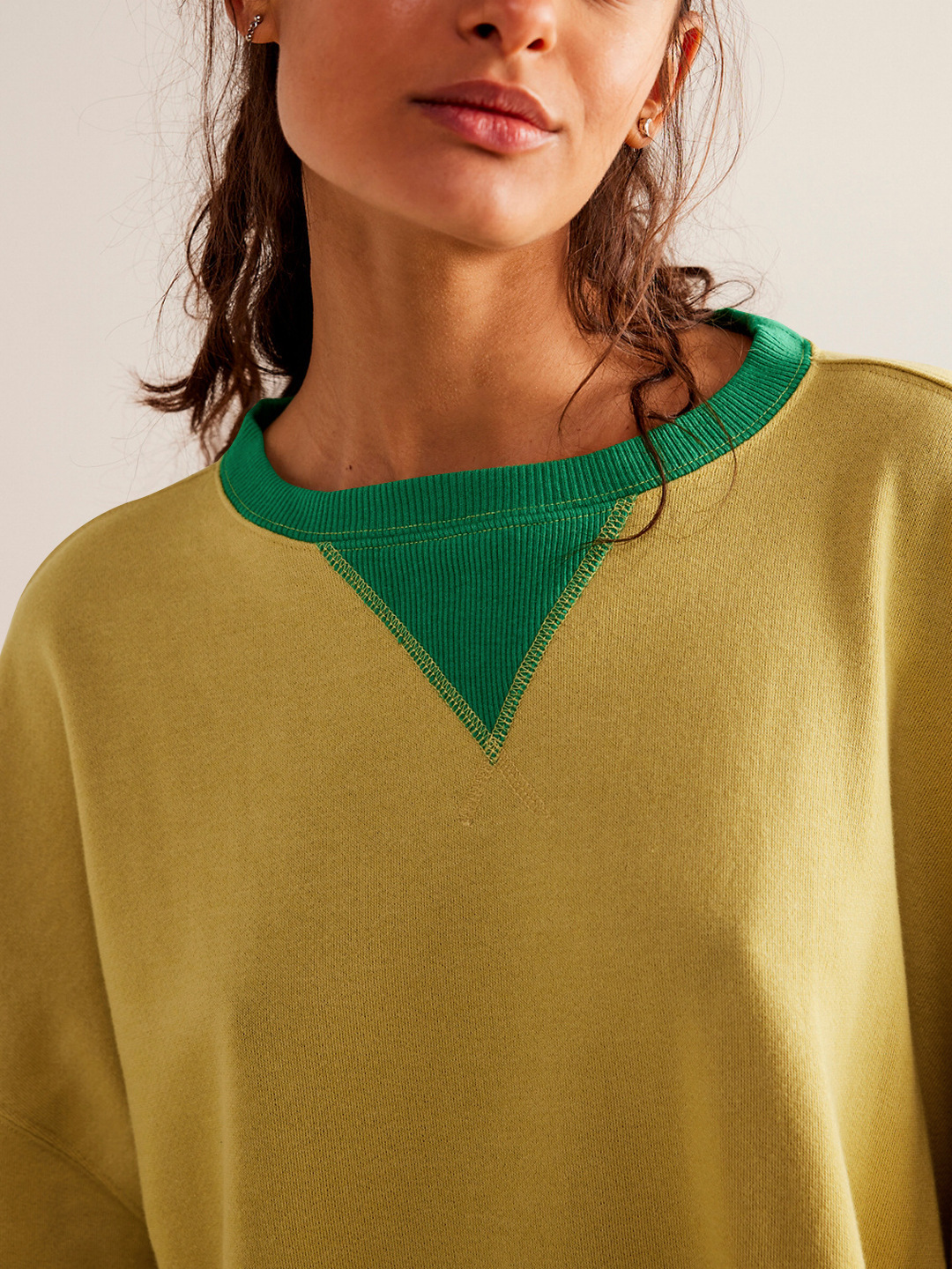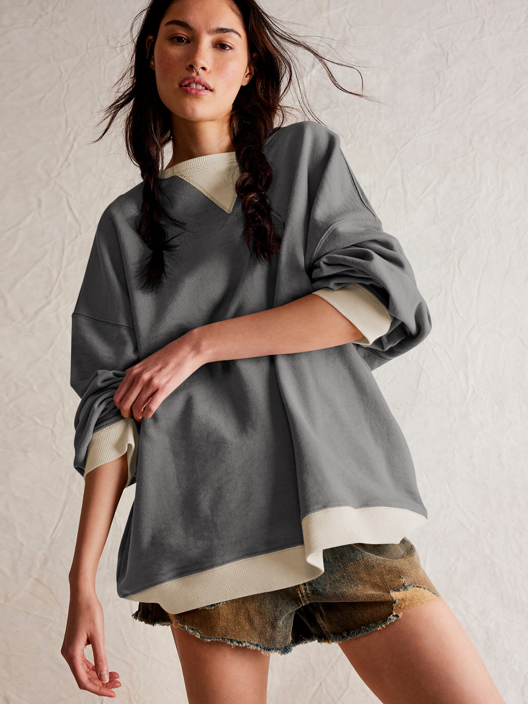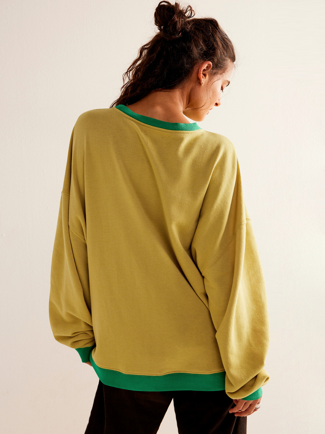 Fashion Color-matching Pullover Sweatshirt Street Casual Loose Lantern Sleeve Tops Sports Womens Clothing