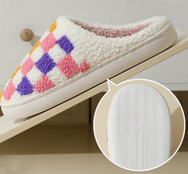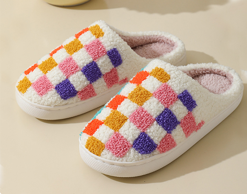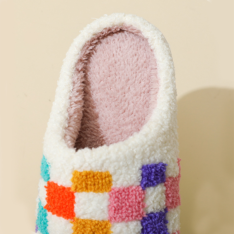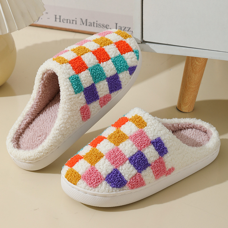 Fashion Colorful Checkerboard Home Slippers Couples Floor Bedroom Slipper Winter Warm Indoor House Shoes For Women And Men