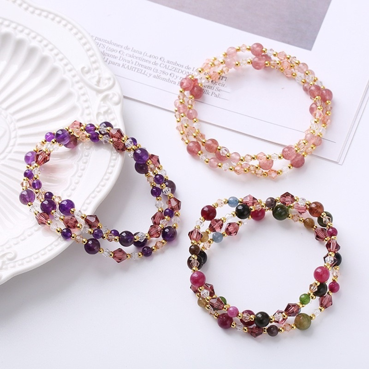 Color: tourmaline, strawberry quartz, Amethyst