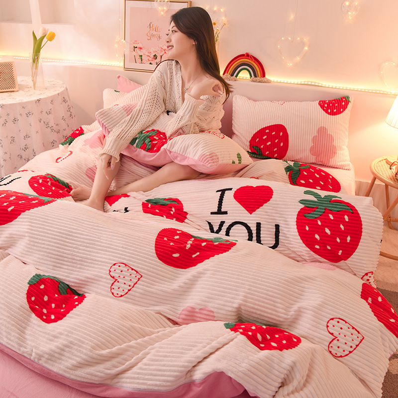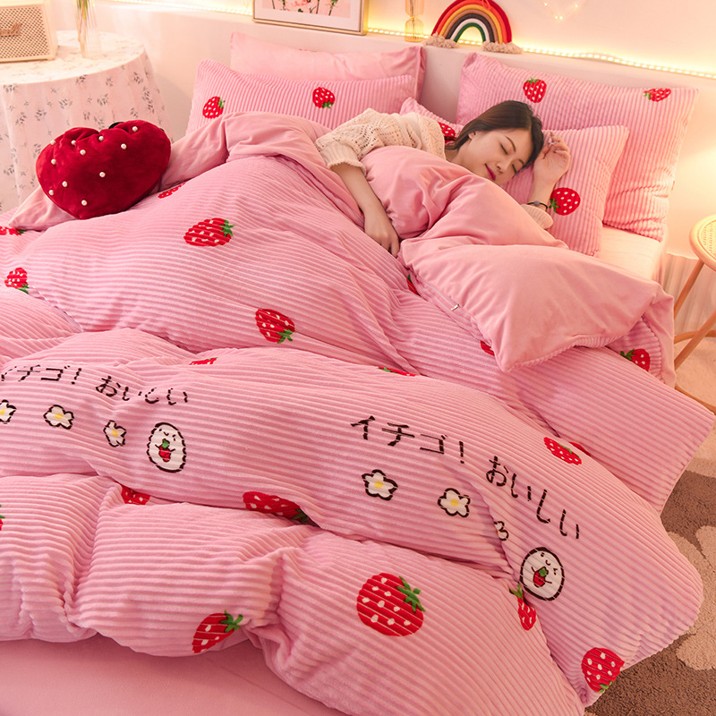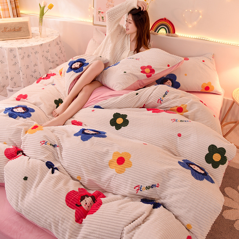 1.5 meter Fitted Sheet Set of Four: Duvet Cover 200 * 230cm Fitted Sheet 150 * 200cm Pillow Case 48 * 74cm 2 pieces