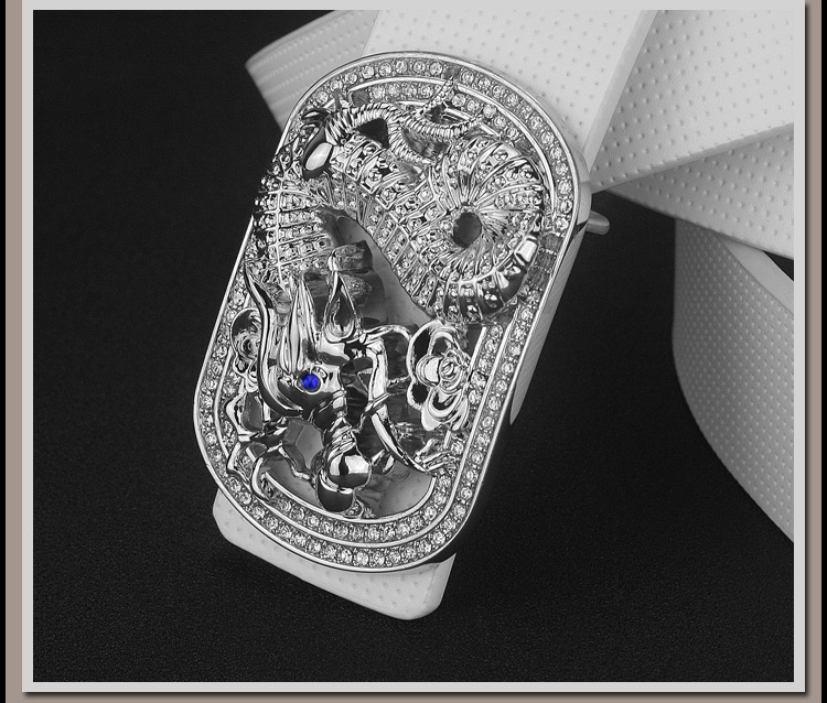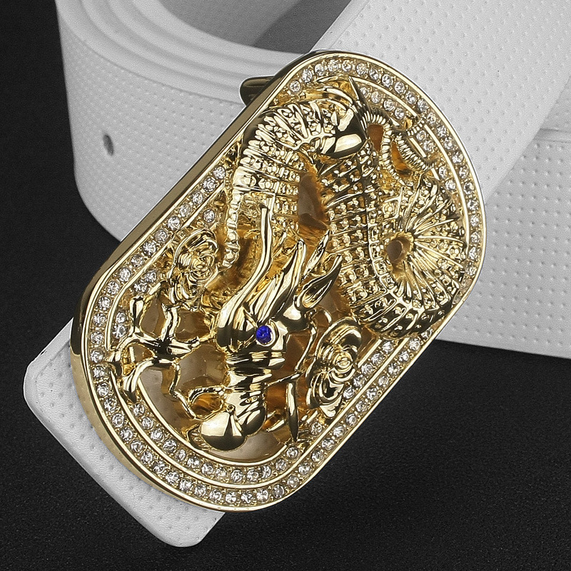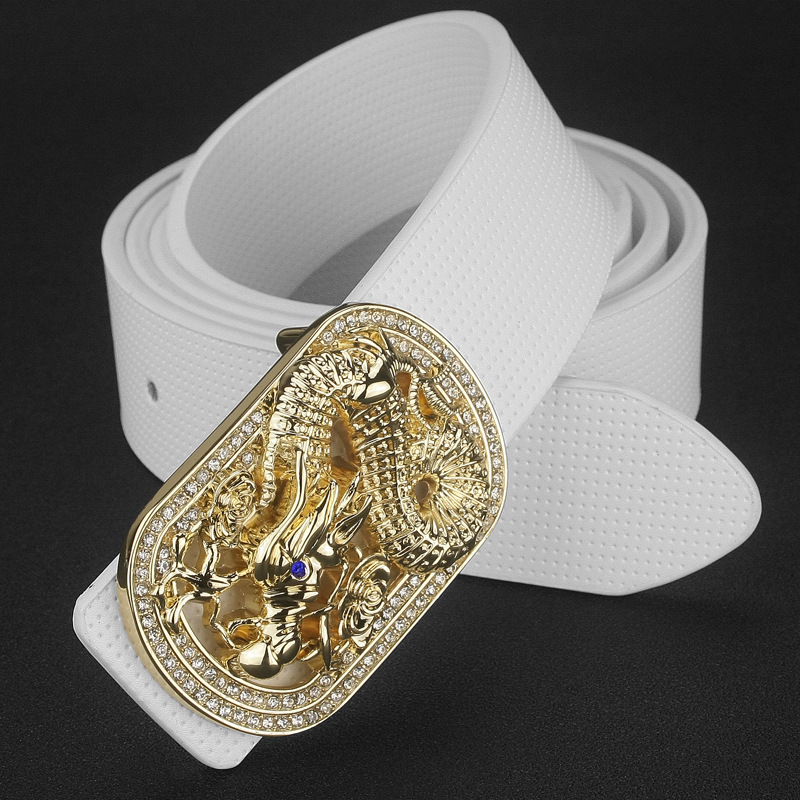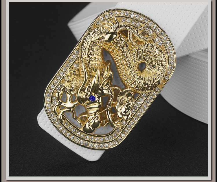 Black leather gold buckle, black leather silver buckle, white leather gold buckle, white leather silver buckle