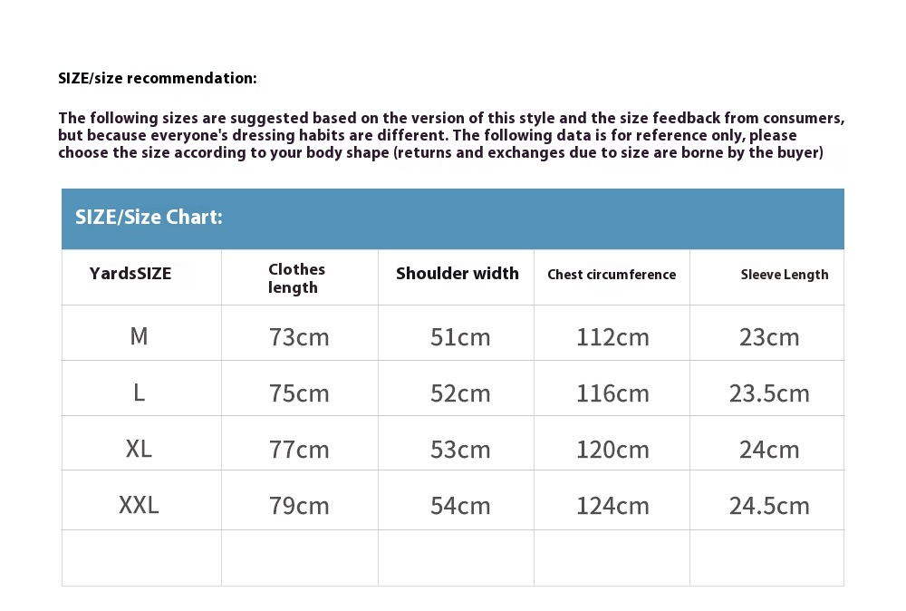 Note: 1. Asian sizes are 1 to 2 sizes smaller than European and American people. Choose the larger size if your size between two sizes. Please allow 2-3cm differences due to manual measurement. 2. Please check the size chart carefully before you buy the item, if you don't know how to choose size, please contact our customer service. 3.As you know, the different computers display colors differently, the color of the actual item may vary slightly from the following images.