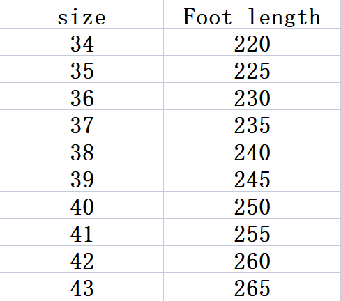 Size: 34, 35, 36, 37, 38, 39, 40, 41, 42, 43