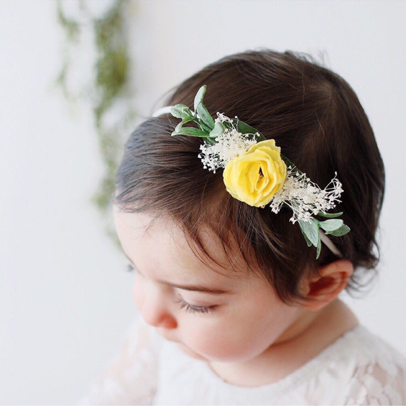 Material: silk cloth flower + felt cloth + nylon hair band + dried flower