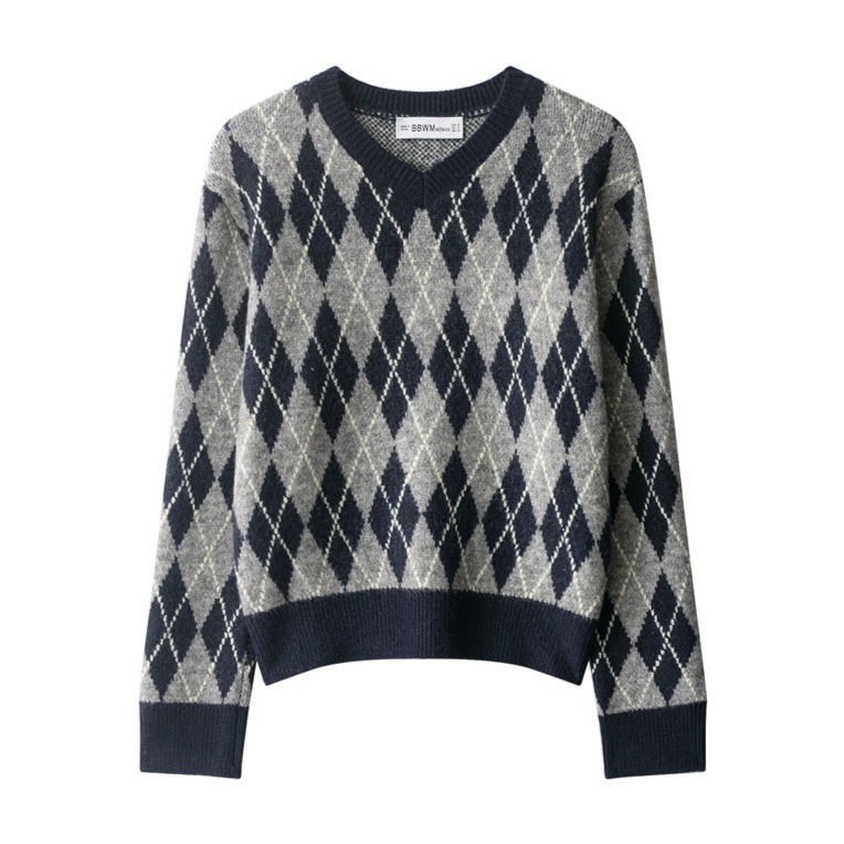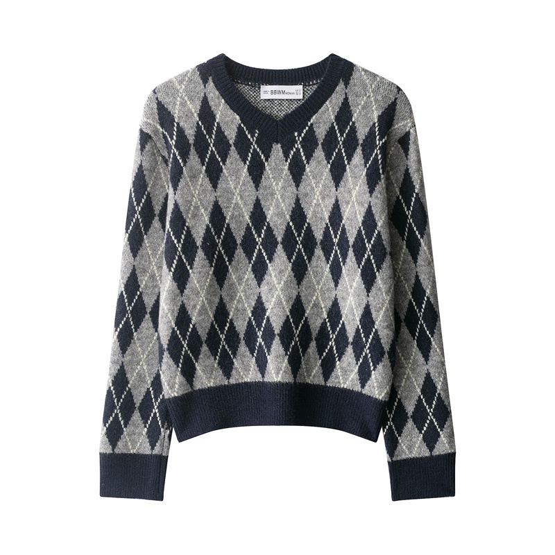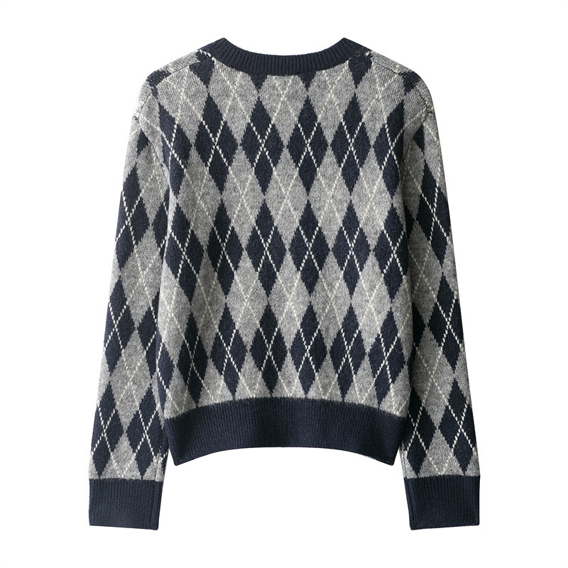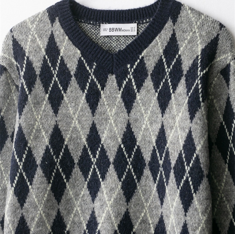 Fashion Diamond Pattern Knit Sweater For Women