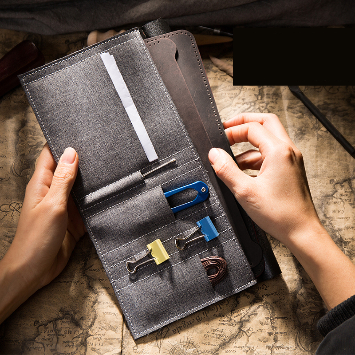 Wallet * 1/ Purse cowhide block *N+ Clip *2+ Sewing needle *2+ flat wax thread *1+ Scissors *1+ instruction manual *1
